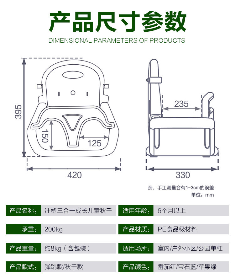1.55米蓝/红(秋千款)+垫,支架+蓝色跳跳+垫,蓝/红(秋千+蓝色跳跳)+垫,1.55米支架,红/蓝色单独座椅无支架(送链接带),蓝色跳跳