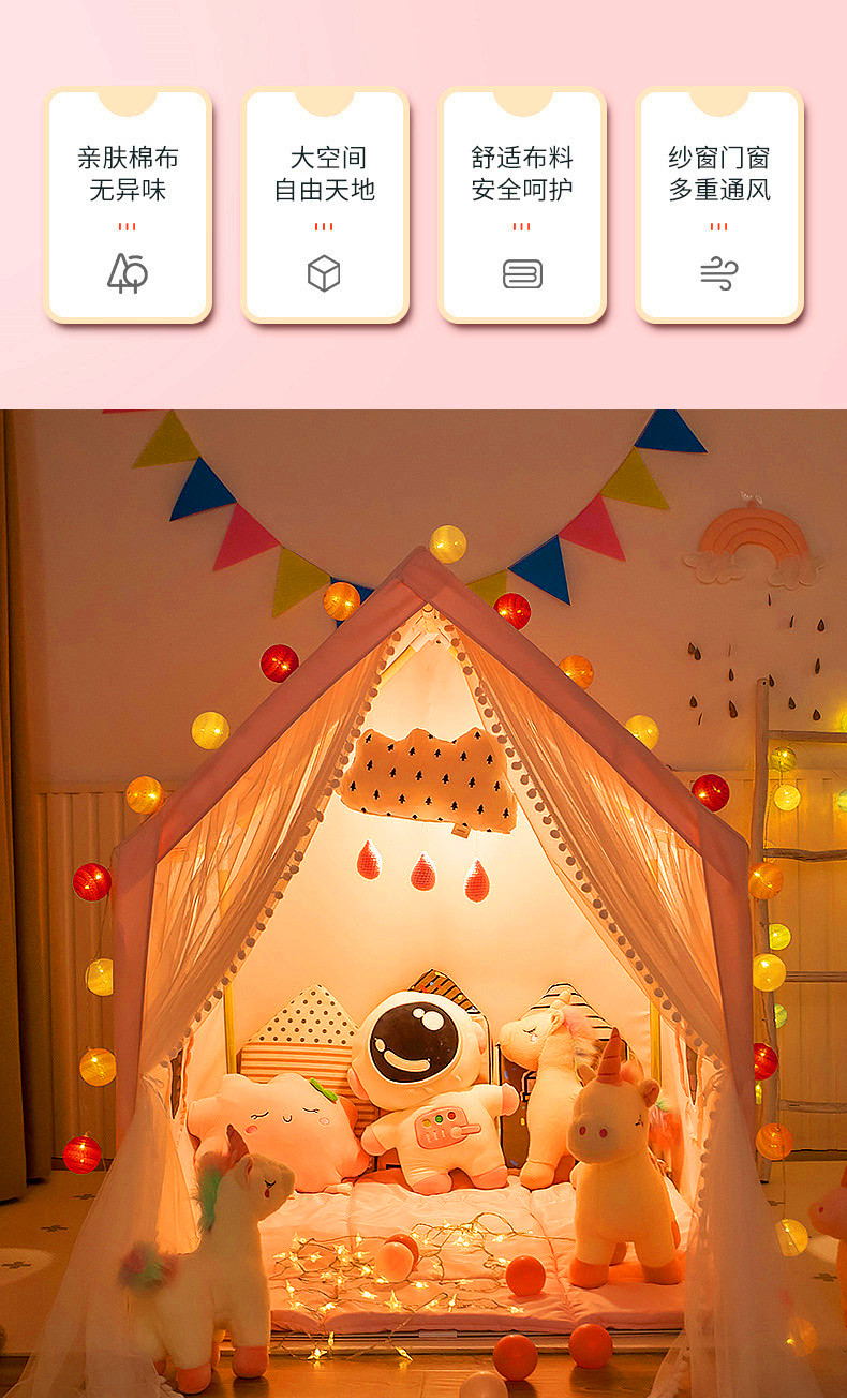 儿童帐篷室内游戏屋公主帐篷玩具屋女孩小房子城堡梦幻分床