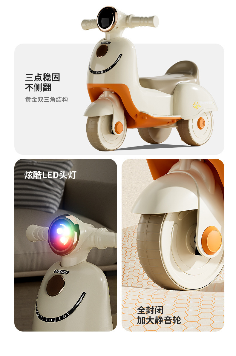 儿童摩托滑行车三轮车1-3岁男女宝宝助步车滑行 小孩可坐人可储物
