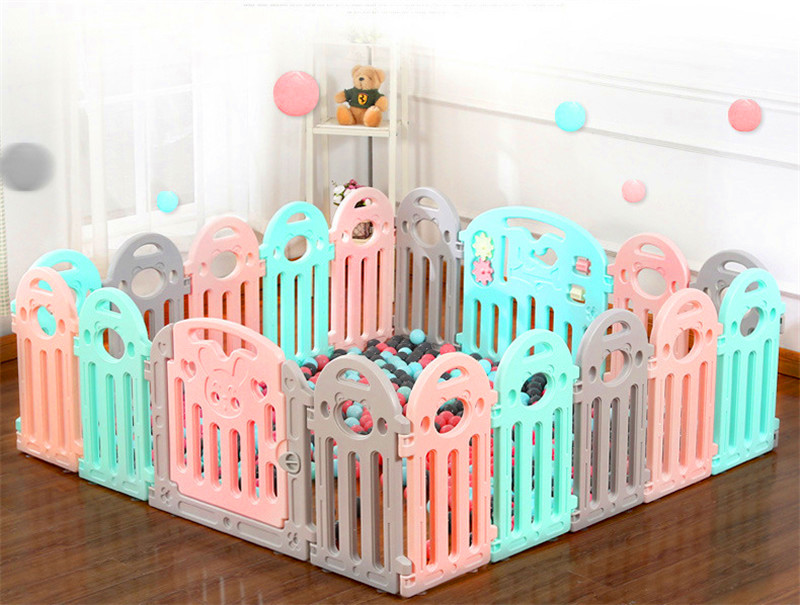 6小片围栏,海洋球50个,24+2+球+筐+机+垫。颜色:粉绿灰,白灰