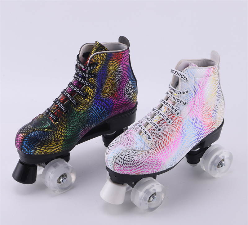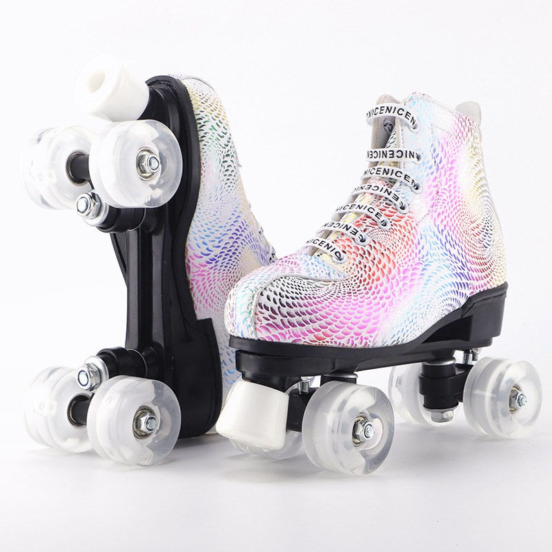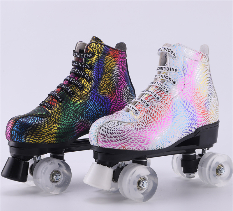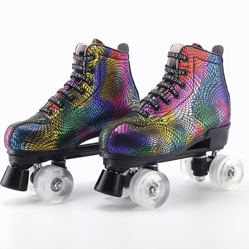 新款成人双排溜冰鞋儿童四轮滑鞋成年男女旱冰鞋双排轮速滑冰鞋