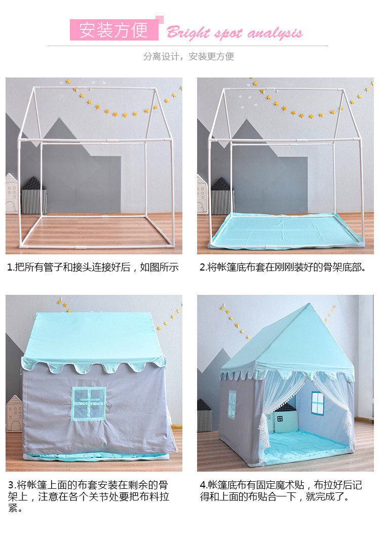 儿童帐篷室内游戏屋公主帐篷玩具屋女孩小房子城堡梦幻分床