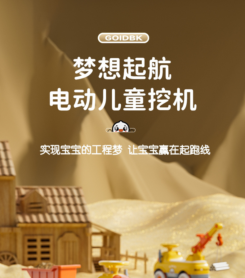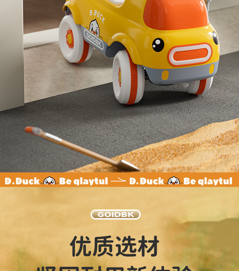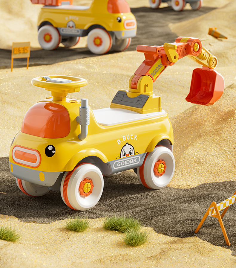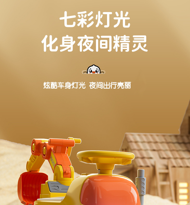 儿童工程车可坐人可骑行电动儿童滑行工程车四轮儿童钩机