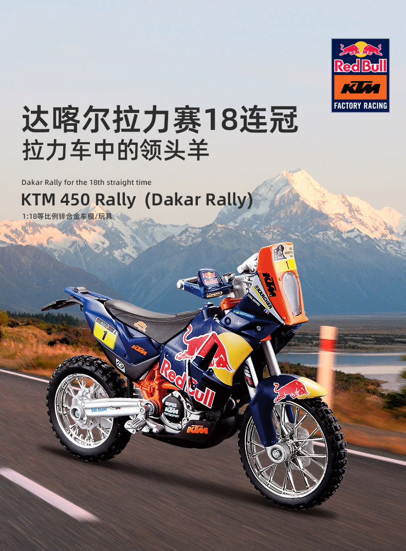 1:18 KTM 450 Rally 红牛摩托车