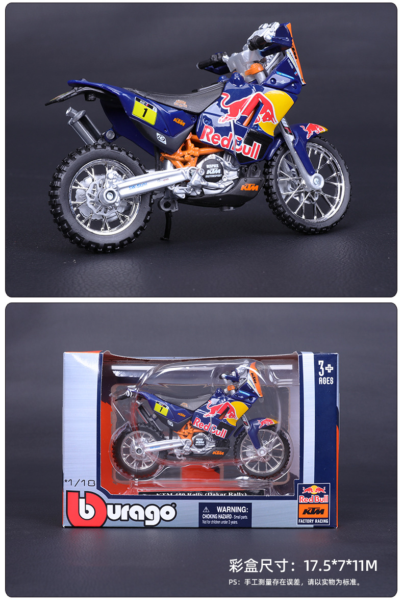 1:18 KTM 450 Rally 红牛摩托车模型送礼男孩摩托车玩具