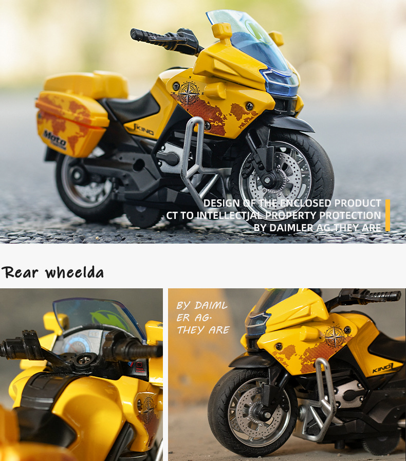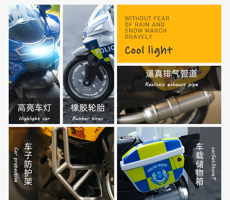 仿真铁骑警察摩托车回力合金车4d模型带灯光炫酷赛车儿童玩具