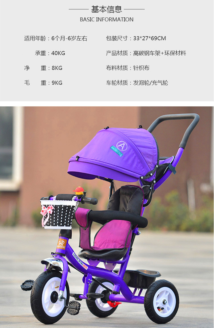 儿童三轮车婴儿手推车,儿童车,1-3岁儿童手推车,厂家直供脚踏童车