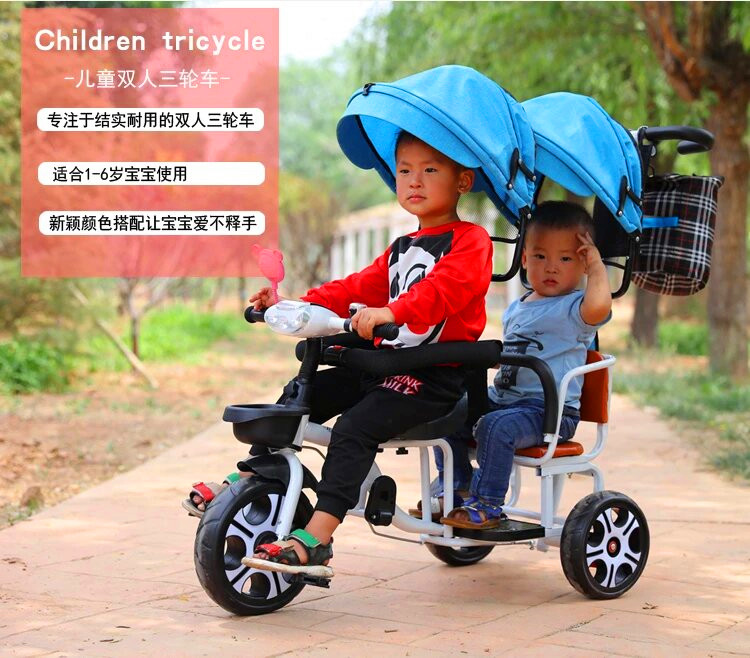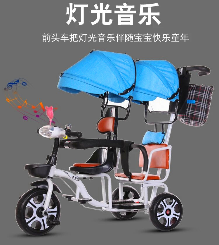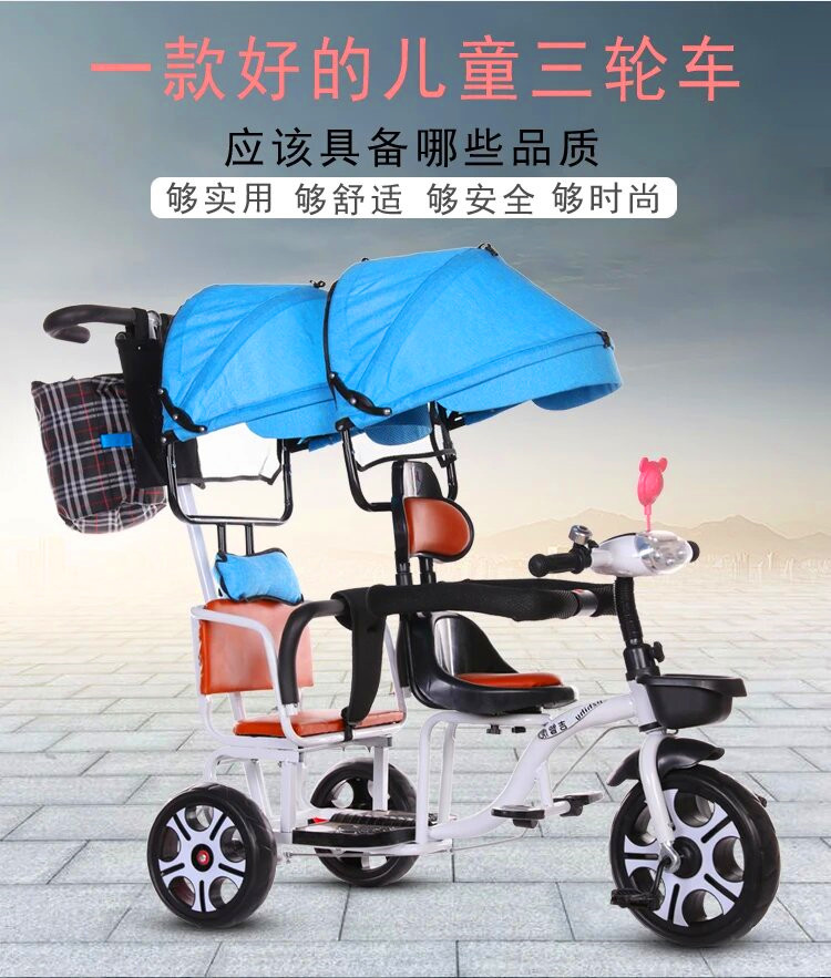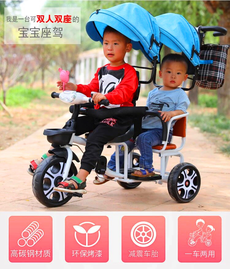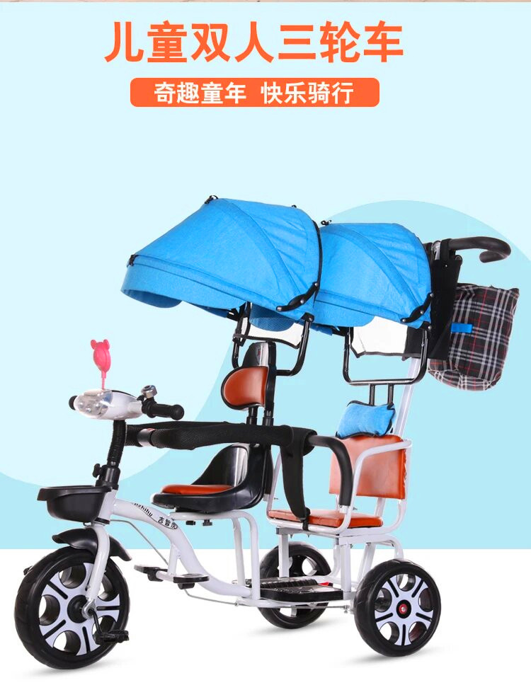儿童三轮车双人手推三轮双胞胎大号婴儿手推车16岁带蓬免充气推车