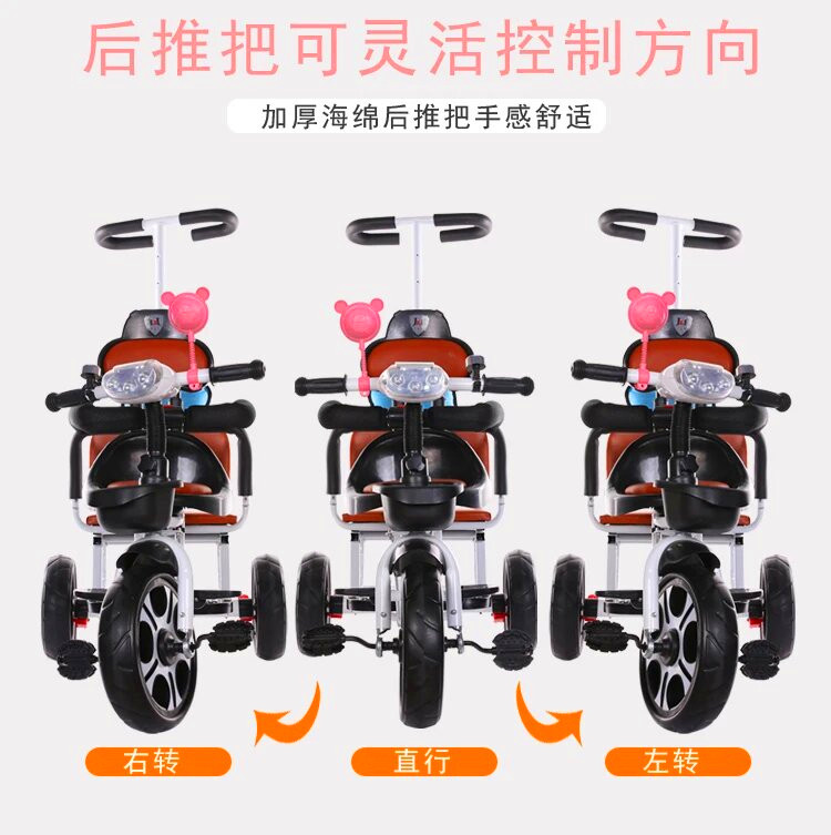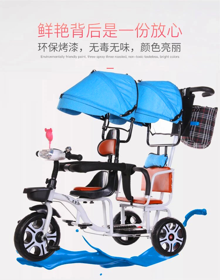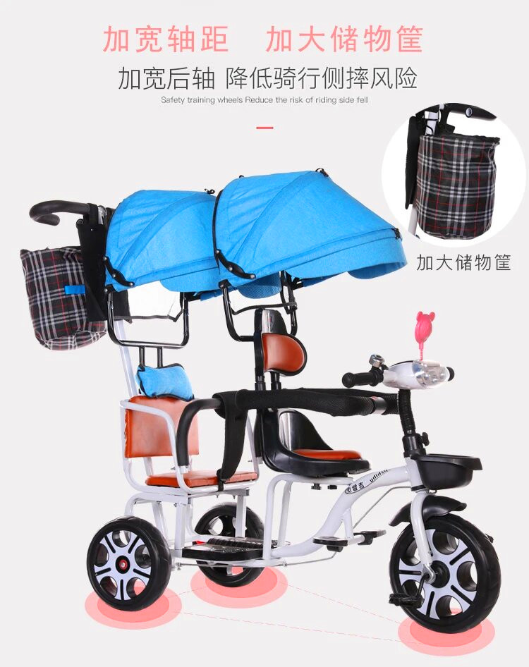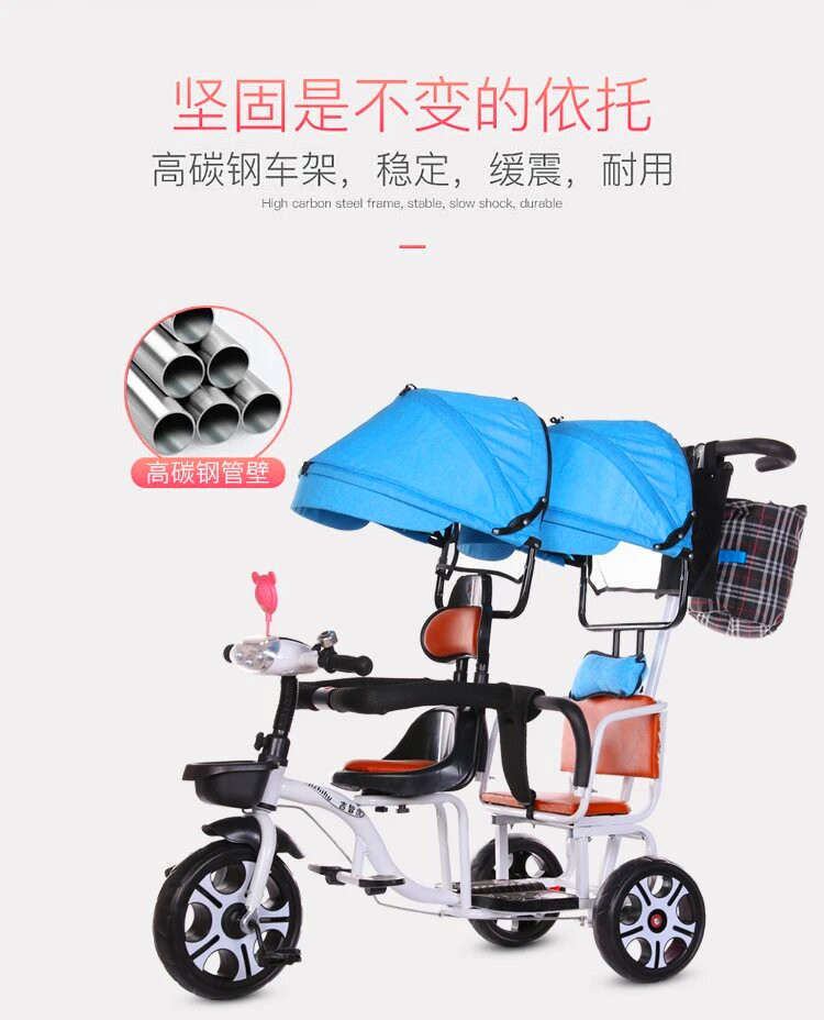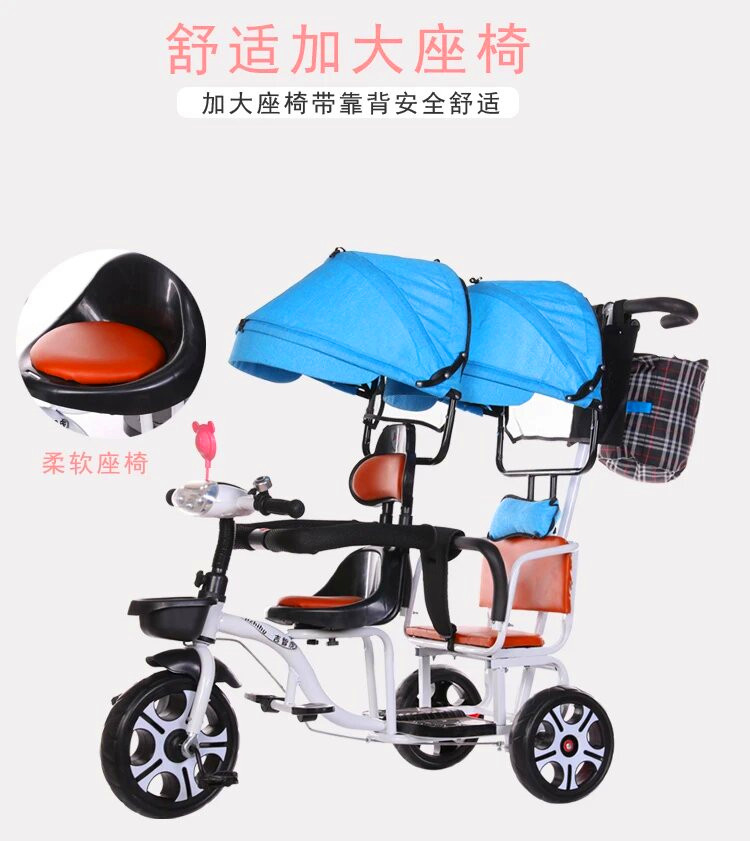 儿童三轮车双人手推三轮双胞胎大号婴儿手推车16岁带蓬免充气推车