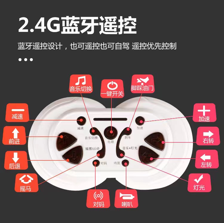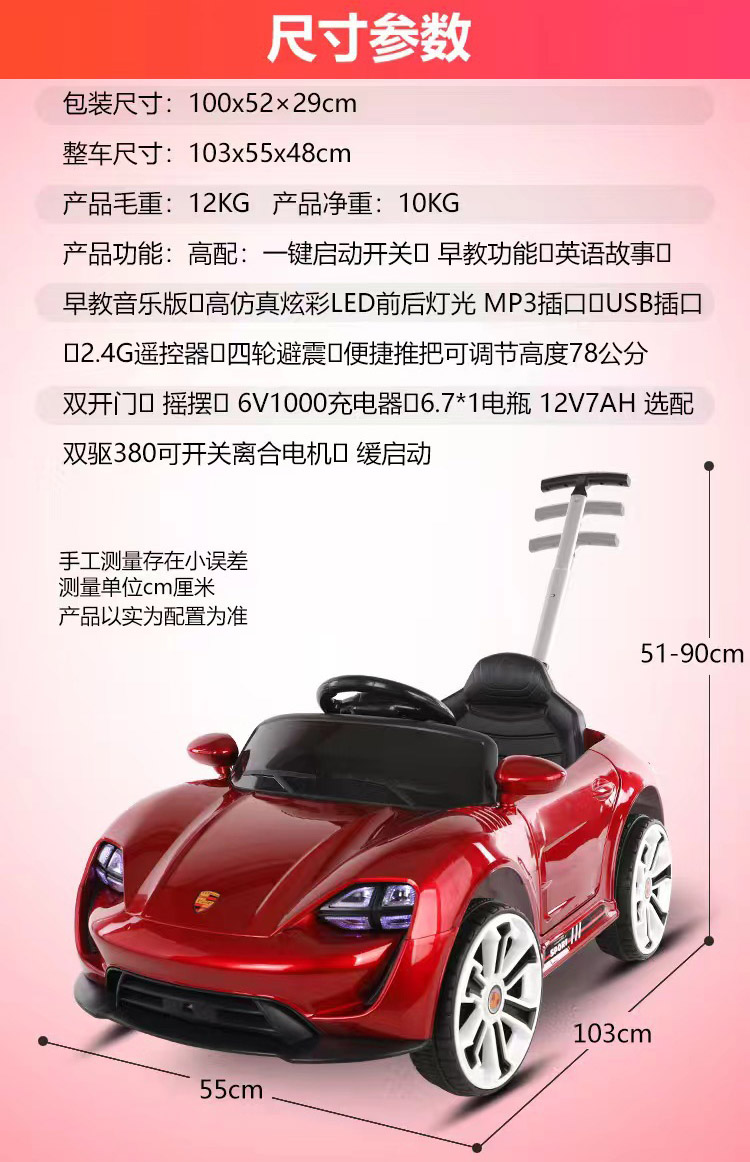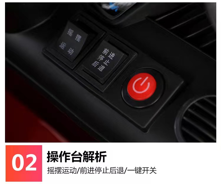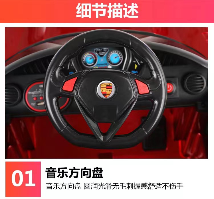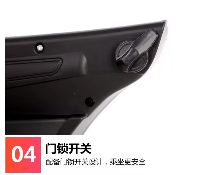 货号:044-TCZD注册会员可查看: 体积.重量等参数,并可自动生成订单合同,自动汇总数据,选配功能!蓄电池6V4/1;驱动电机6V380/1;转向电机6V380/1;充电器6V800mA;保护器10A1:仿真车型;2:双开门;3:早教音乐;4:炫酷彩灯5:遥控;6:带手机遥控;7:仿真尾翼;8:推把设计