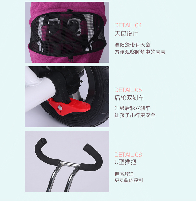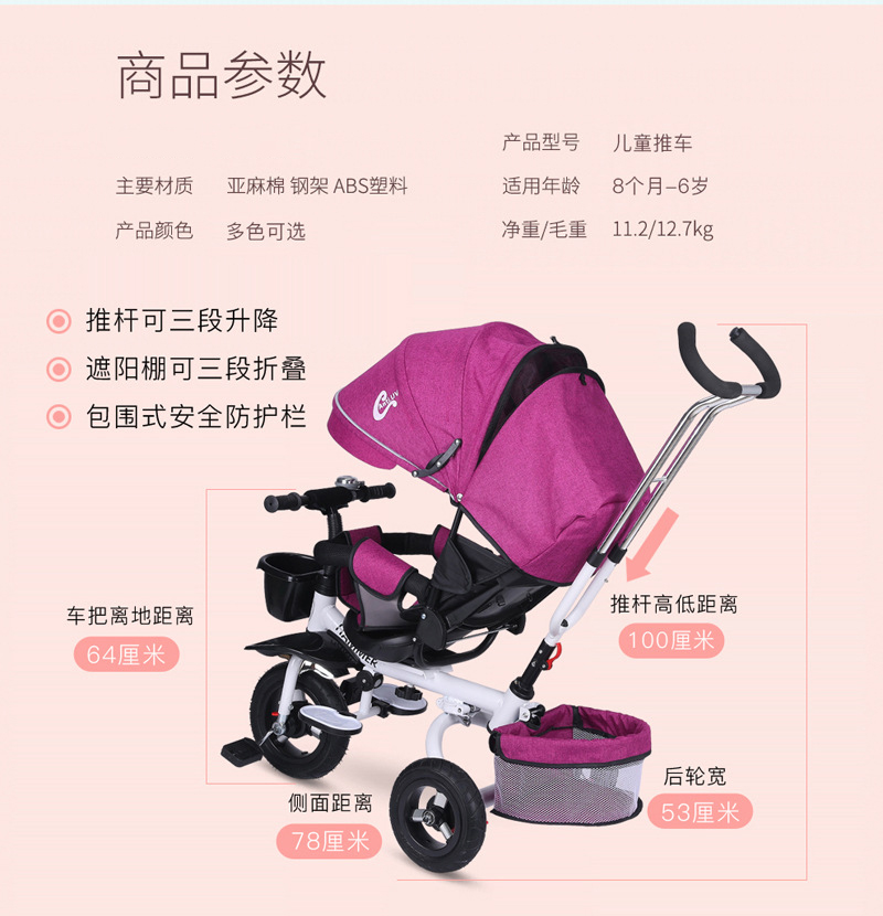 材质:钢管功能:手推适用年龄:6-12个月,1-3岁,3-6岁童车车轮类型:发泡轮有无遮阳:有是否手推:是有无储物篮:有