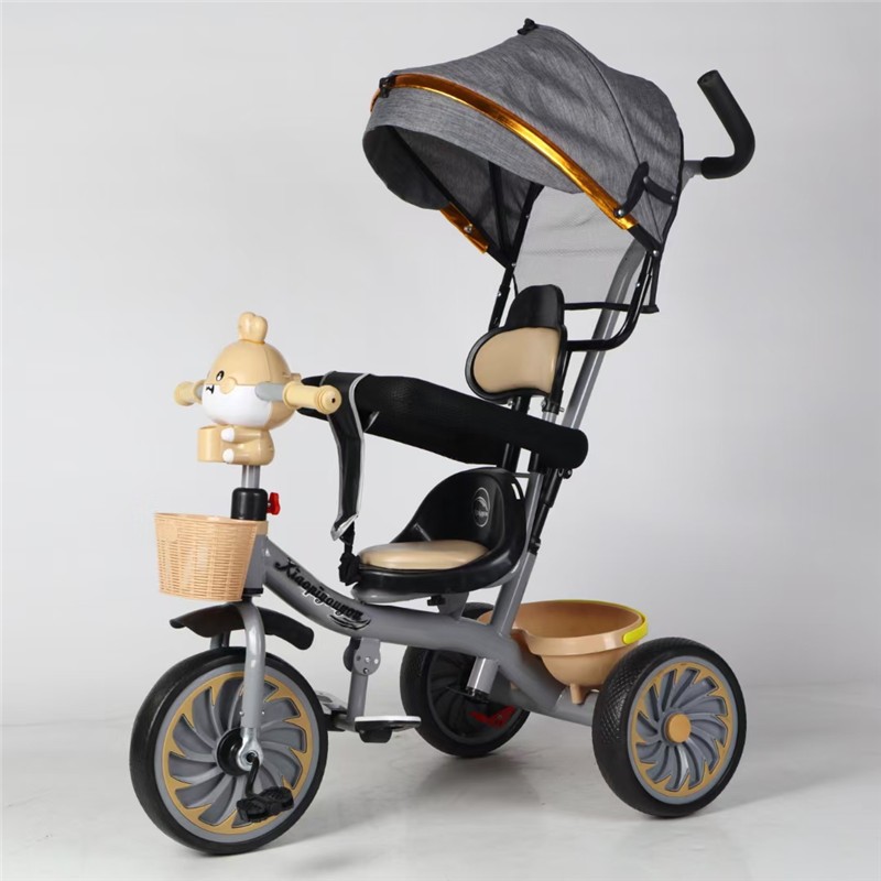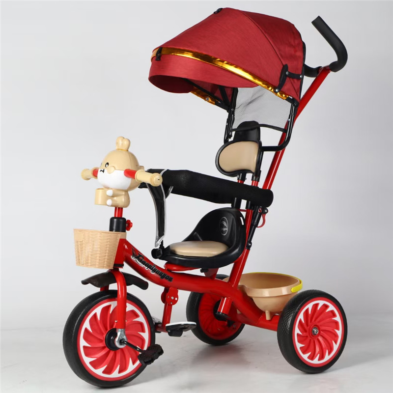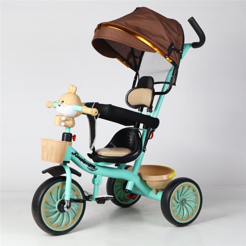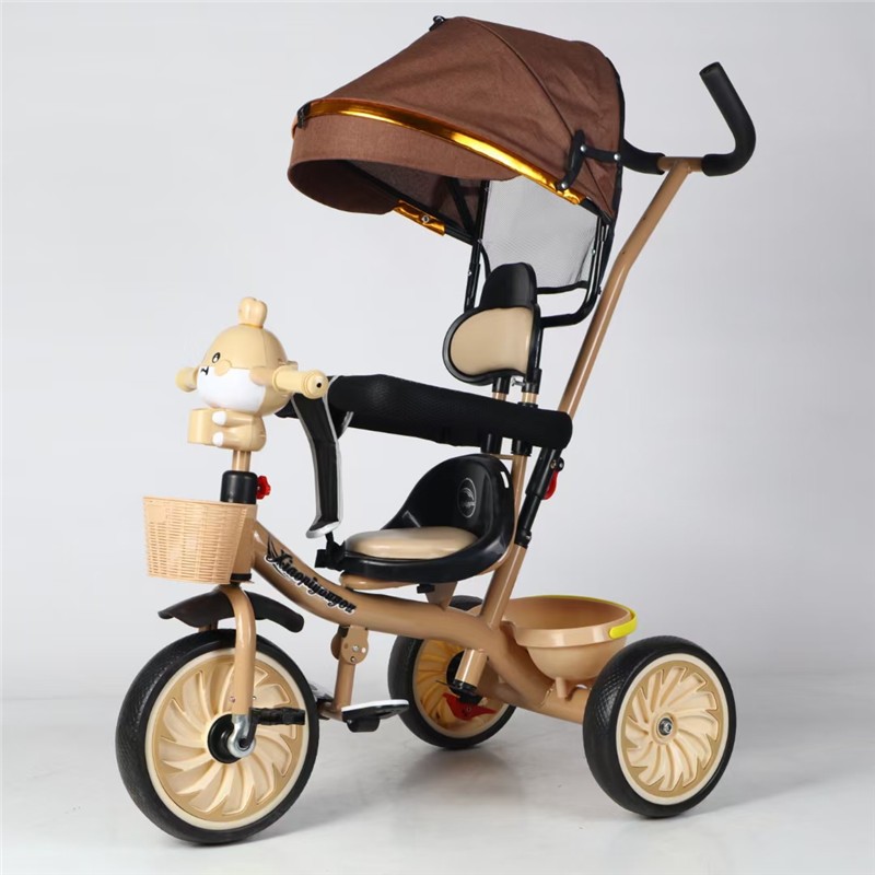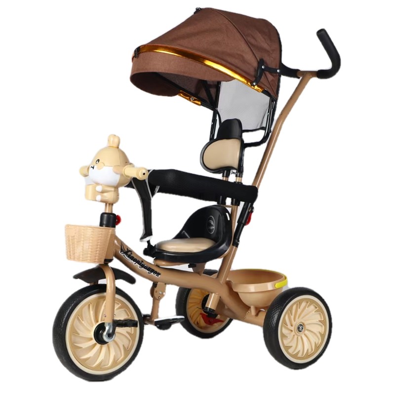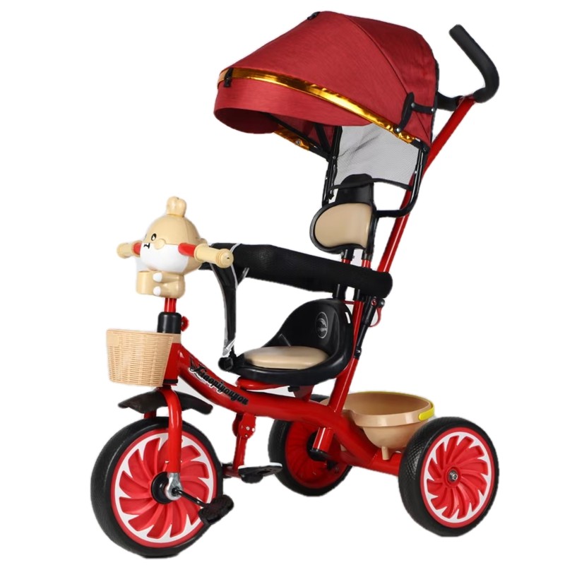 儿童三轮车自行车四合一带蓬手推车宝宝脚踏车音乐灯光玩具车