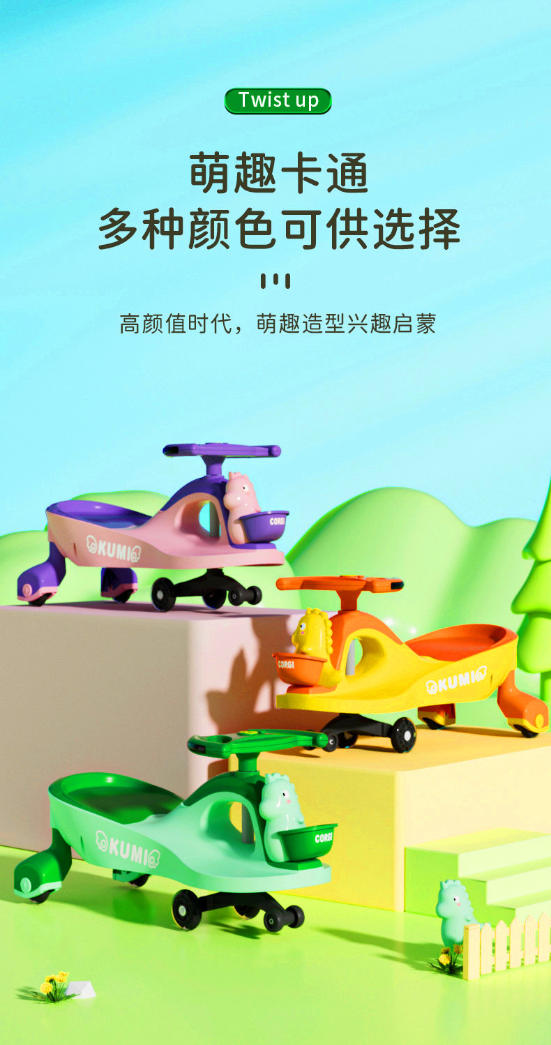 扭扭车青蛙恐龙儿童扭扭车1-3岁四轮静音万向轮滑行车摇摆车