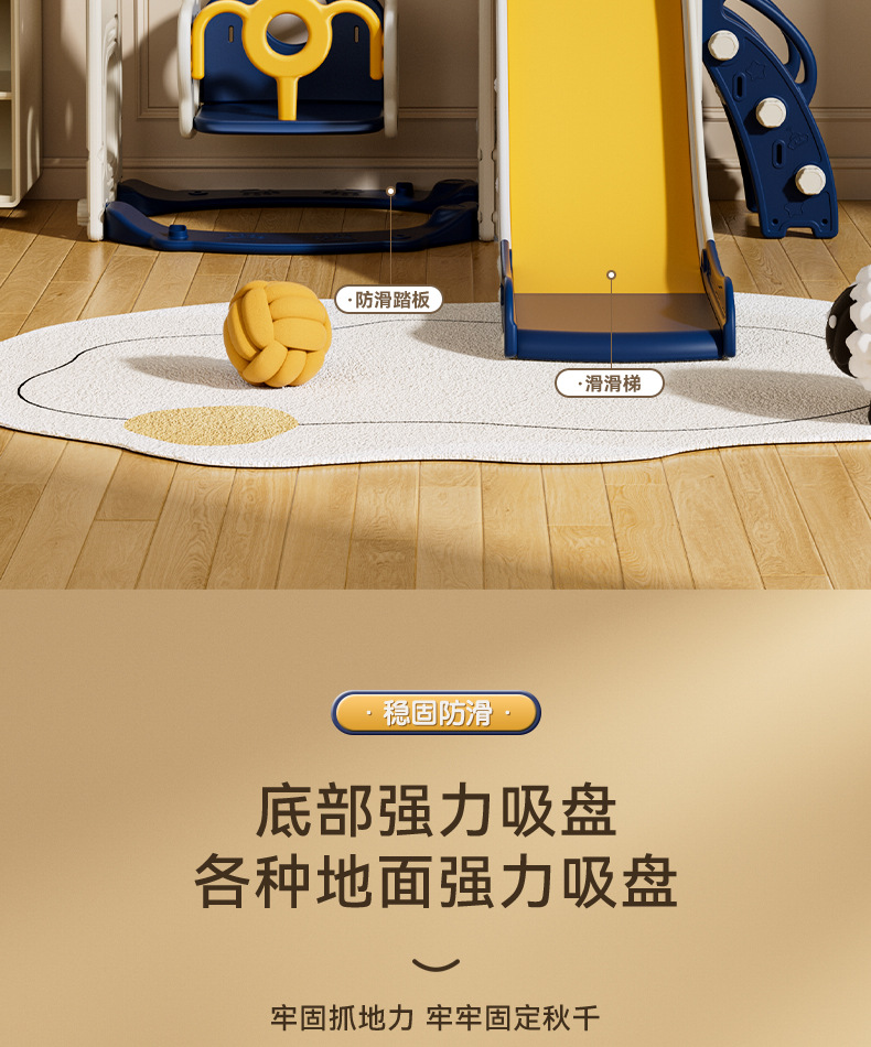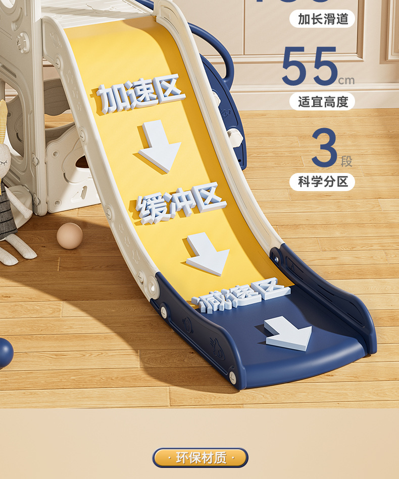 儿童室内滑梯加厚防滑简易安装可折叠稳固加宽底座多色选滑滑梯