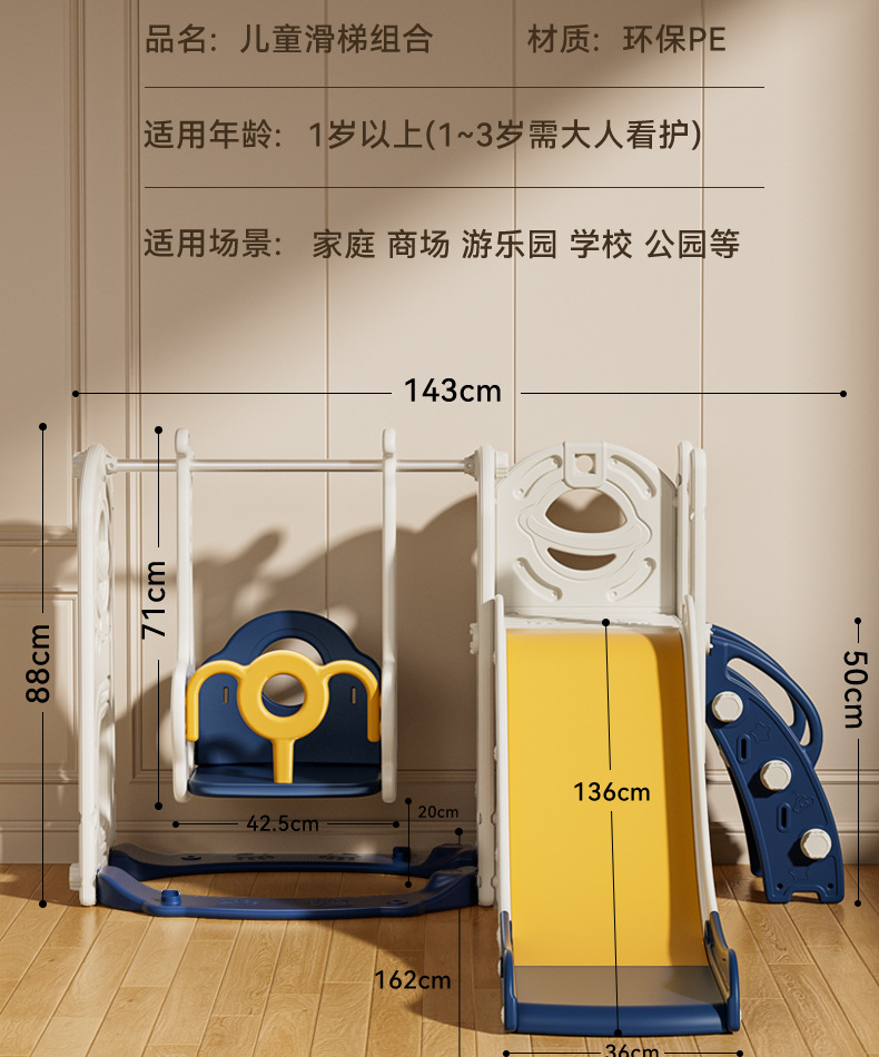 儿童室外内滑滑梯婴幼儿家庭玩具宝宝爬梯神器秋千组合可折叠滑梯 ¥66.00