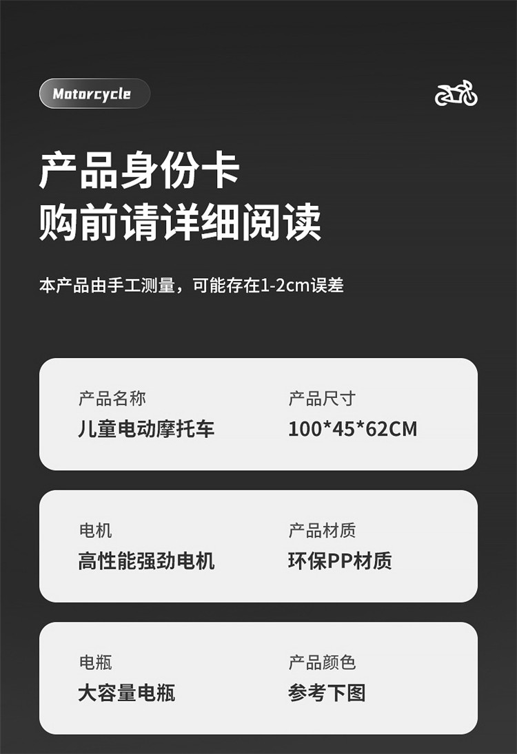 新款儿童电动车摩托车两轮越野卡丁车玩具儿童电动摩托车 ¥798.00
