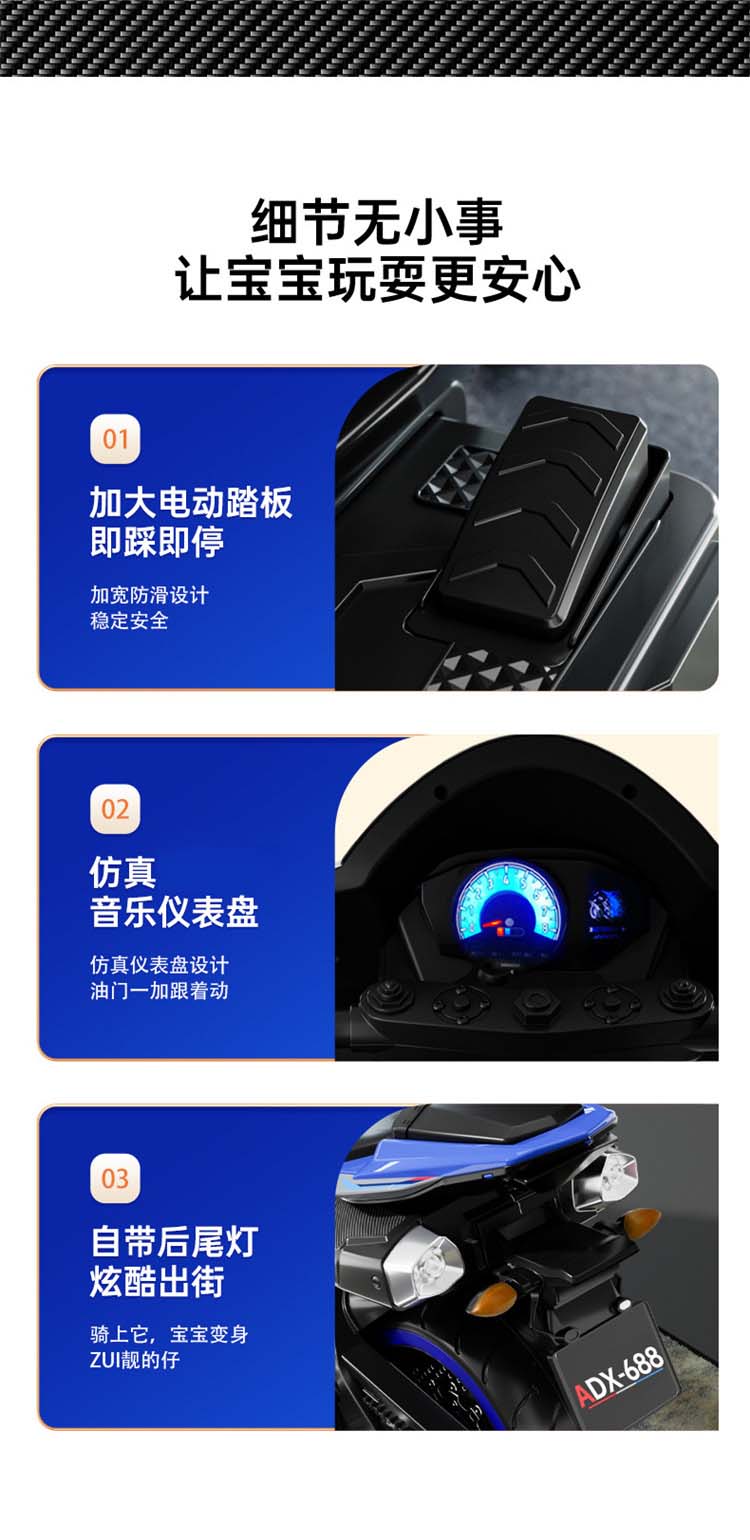 货号:028-TCZD注册会员可查看: 体积.重量等参数,并可自动生成订单合同,自动汇总数据,选配功能!一键启动+灯光音乐+蓝牙播放器+仿真声浪+早教音乐+音量调节+USB插口+电量显示+前进后退+重低音炮喇叭+550大动力驱动电机变速(自由选配).轮子带灯(自由选配).皮座椅(自由选配).12V4.5/12V7(自由选配)