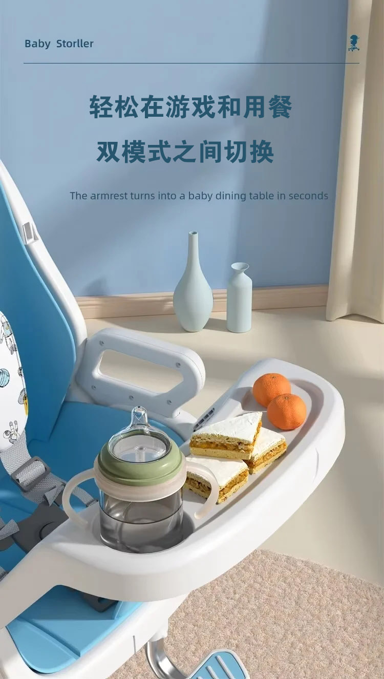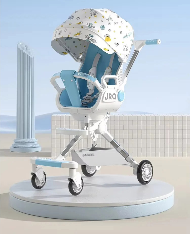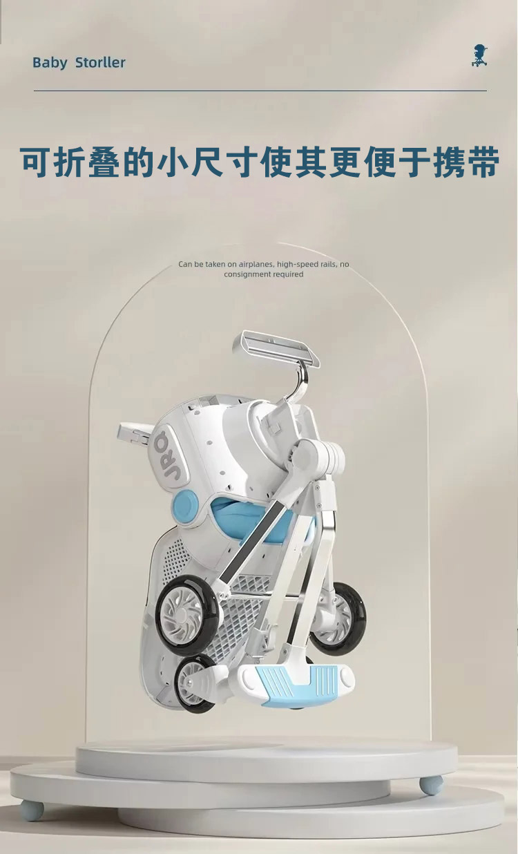 加厚加固的铝合金框架,一键折叠,舒适托盘,可调式遮阳篷,五点式安全带坐垫,可伸缩后推把手,仿真皮粒面面料,氧化工艺铝管材质,靠背三档可调,氧化工艺铝管管材质,耐磨发泡轮胎,前轮12cm,后轮17cm。
