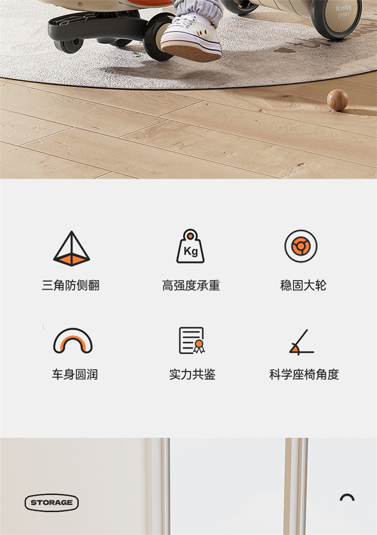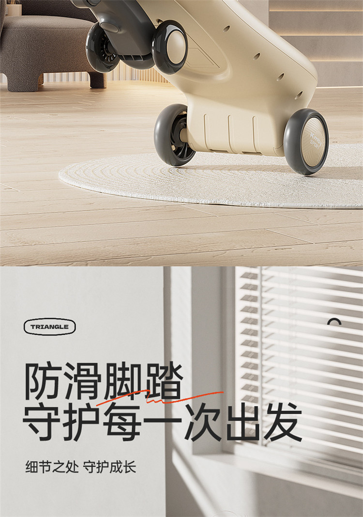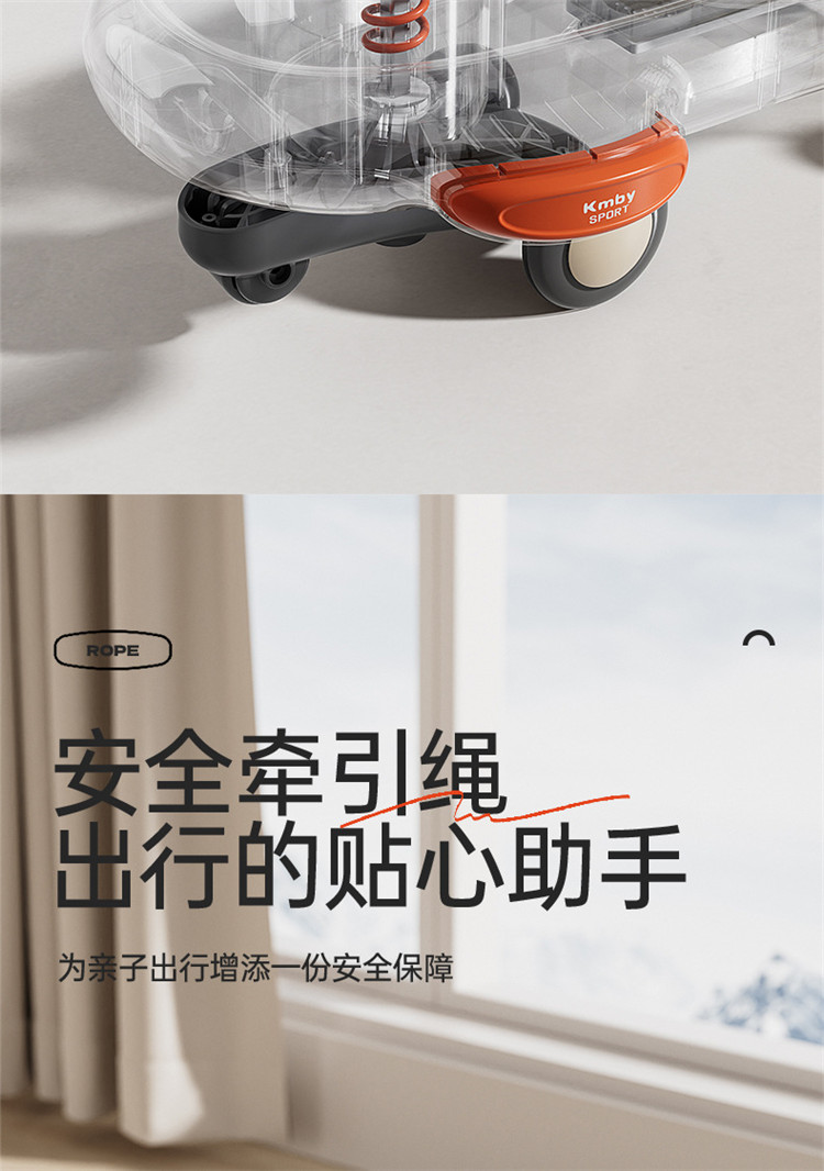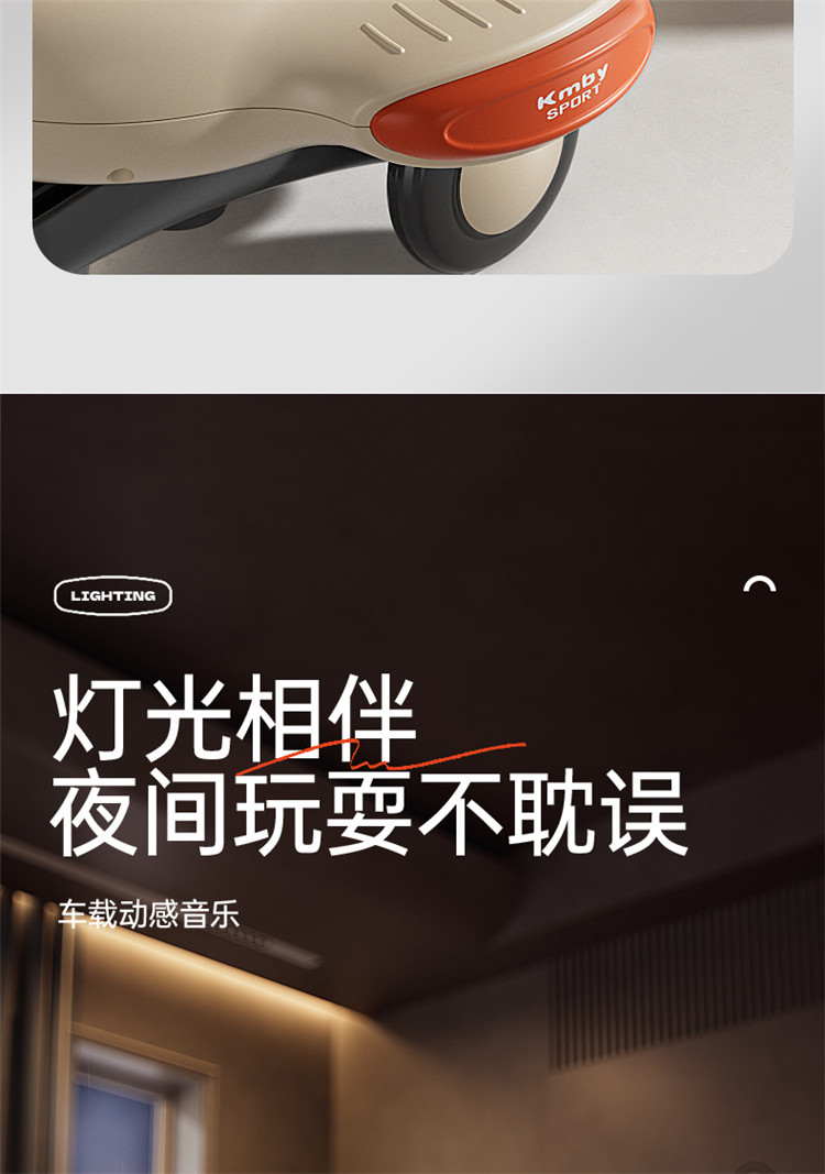 新颖小飞艇造型,灯光音乐,加宽加厚座板,一键拉出座板,加大储物箱,闪光静音PU轮