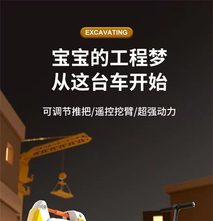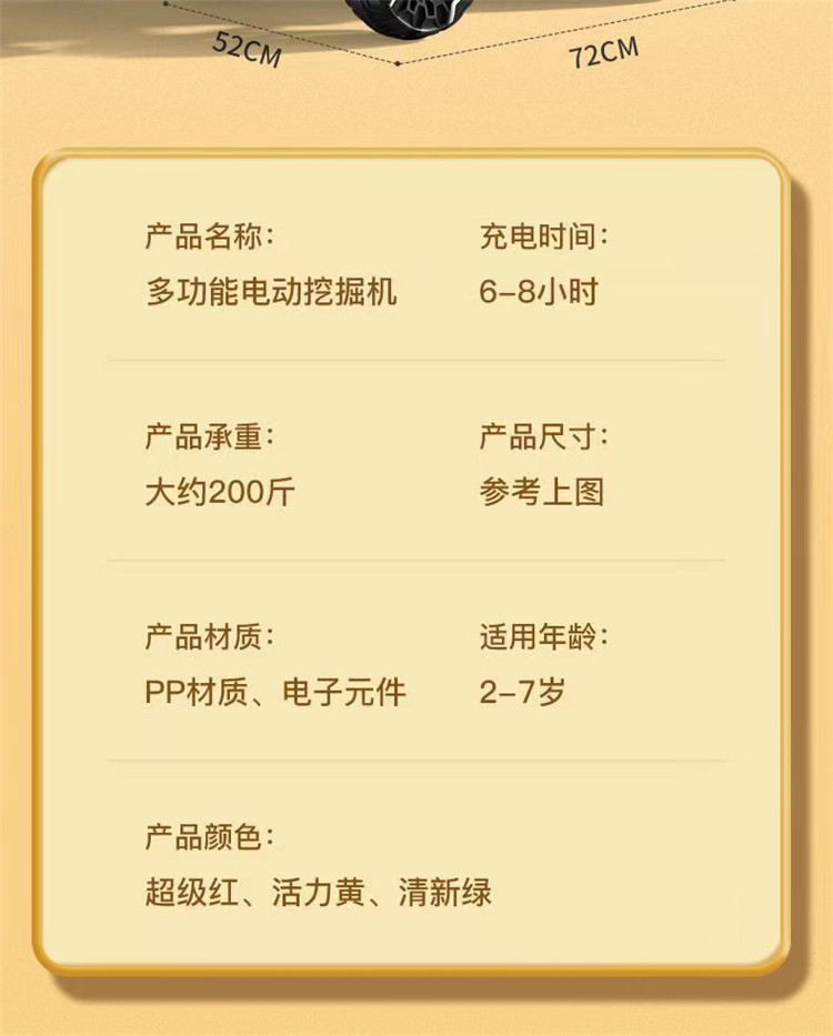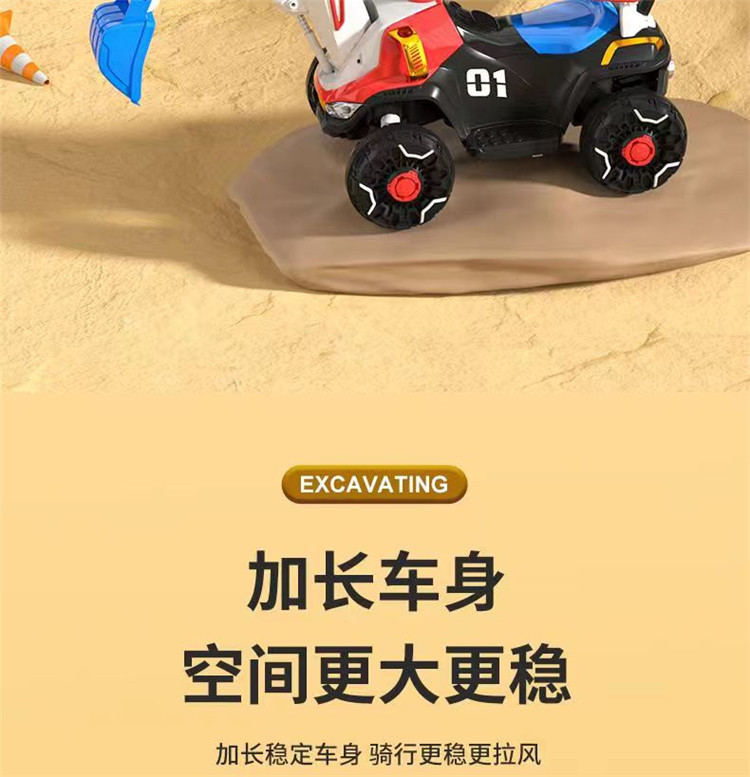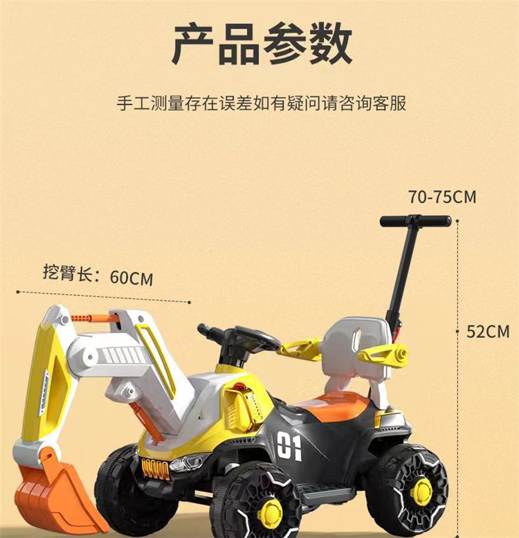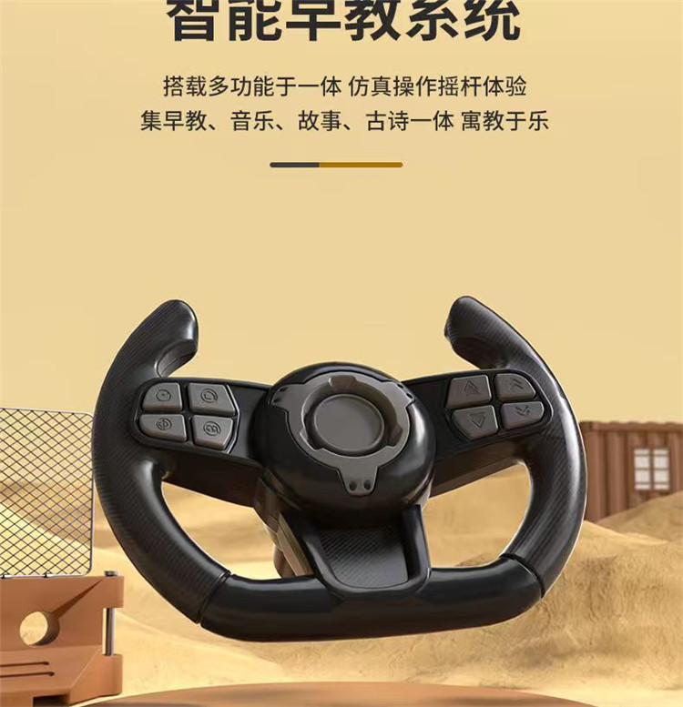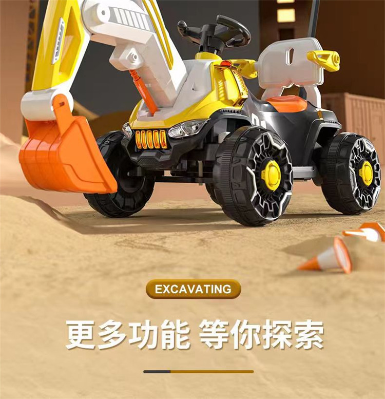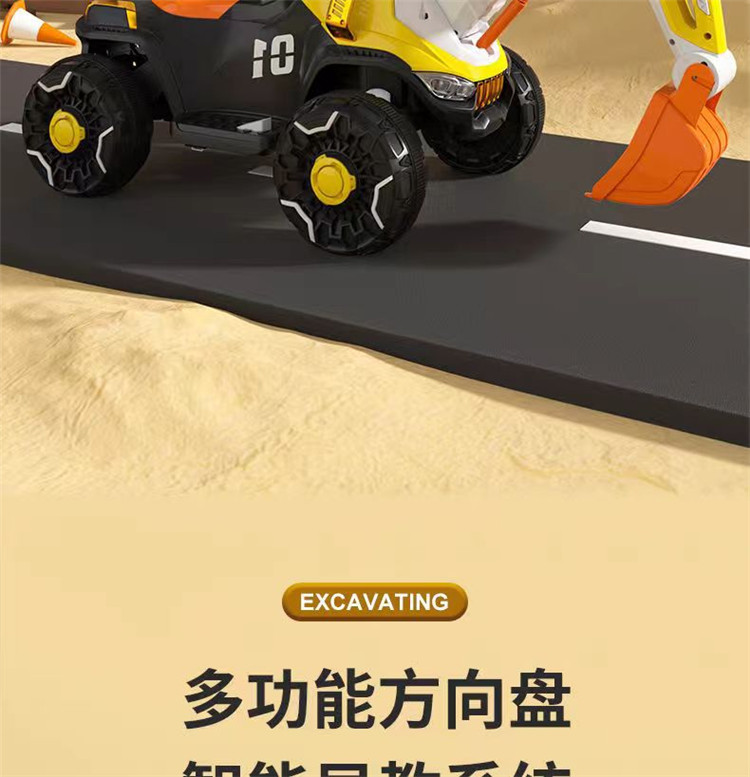 货号:039-TCZD注册会员可查看: 体积.重量等参数,并可自动生成订单合同,自动汇总数据,选配功能!全电动挖掘机,电动挖臂/半围/可拆卸,科学设计,多种功能方向盘,一键启动6V380电机, 6V4.5AH电瓶LED大灯,动感音乐