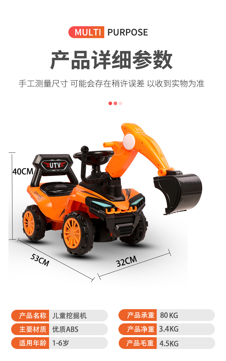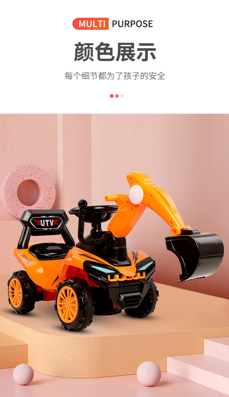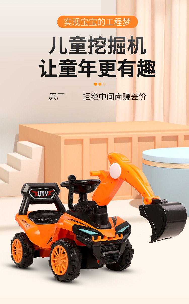 新款单包装儿童挖土机工程车1-3岁滑行车玩具仿真玩具可坐人男孩