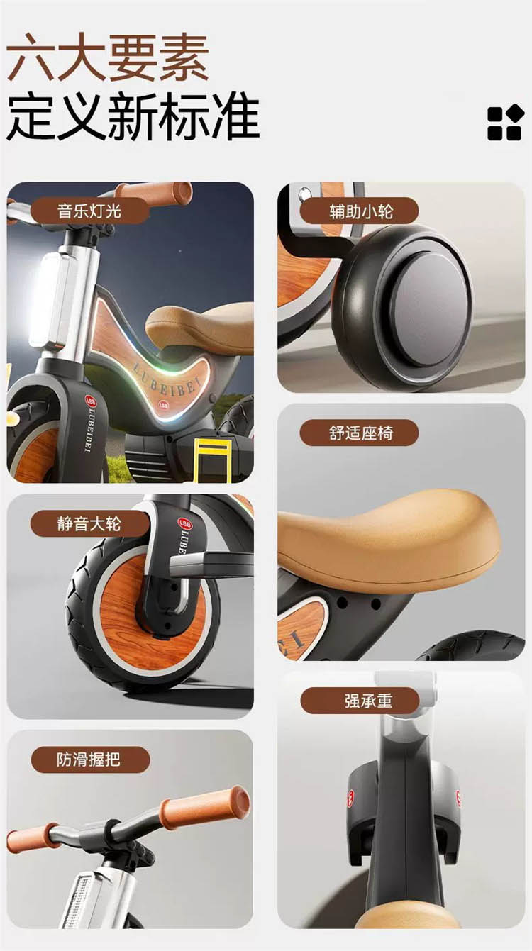 货号:044-TCZD注册会员可查看: 体积.重量等参数,并可自动生成订单合同,自动汇总数据,选配功能!1:灯光;2:音乐;3:脚踏+骑行;4:副轮助力;5:仿木纹花型设计;6:配置两轮骑行