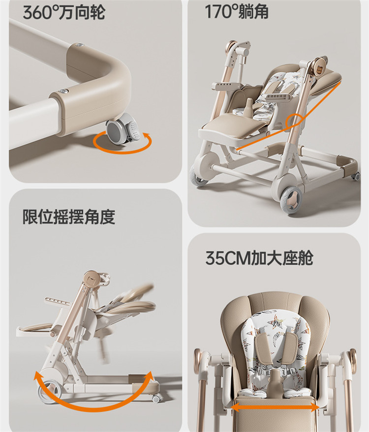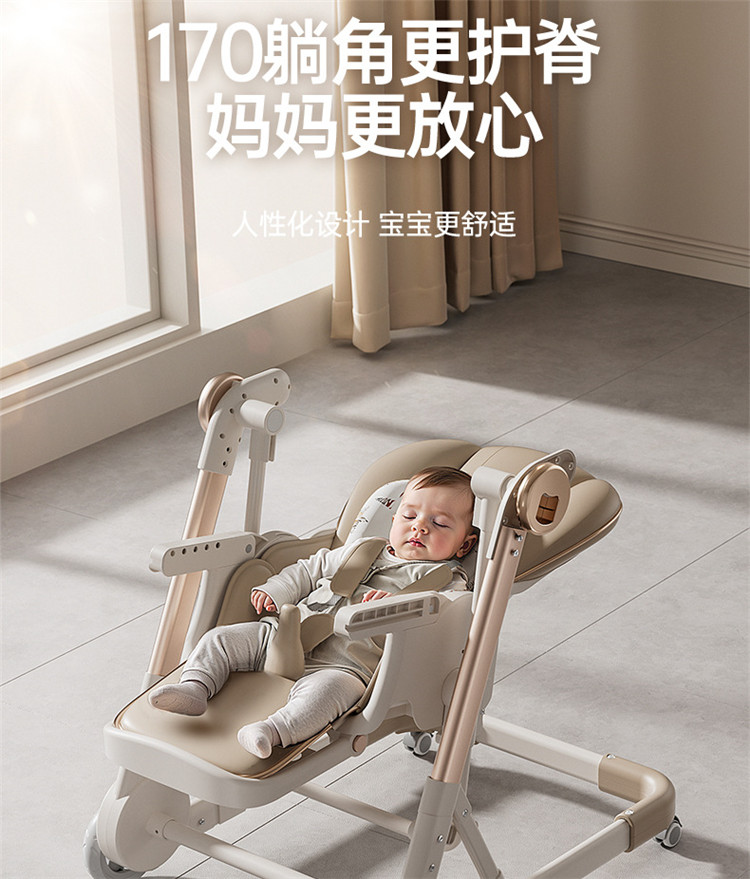 货号:046-TCZD注册会员可查看: 体积.重量等参数,并可自动生成订单合同,自动汇总数据,选配功能!免安装多种功能餐椅,可秒变摇摇椅,170度躺角更护脊。餐盘可四档调节,座椅高低五档调节,可调节成躺椅模式’加宽加大座舱皮做垫。一体式免安装,开箱即用