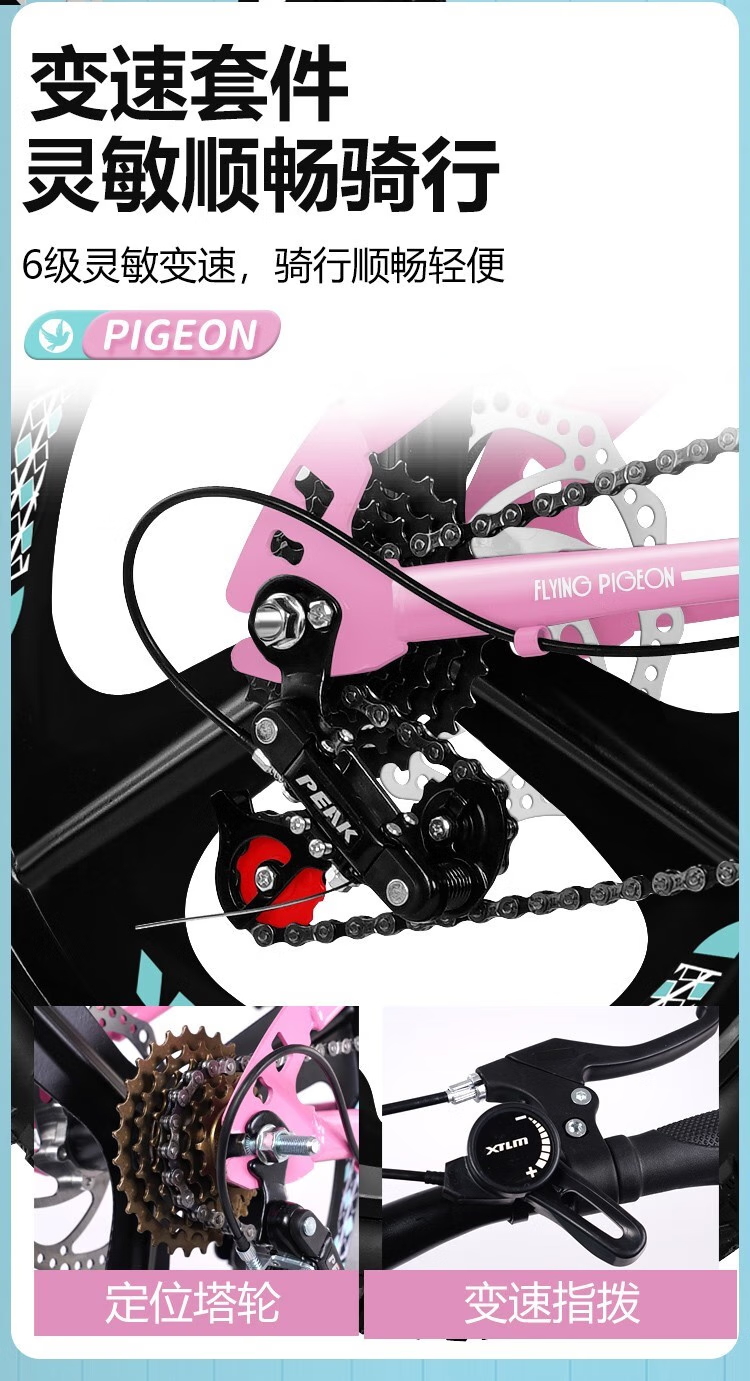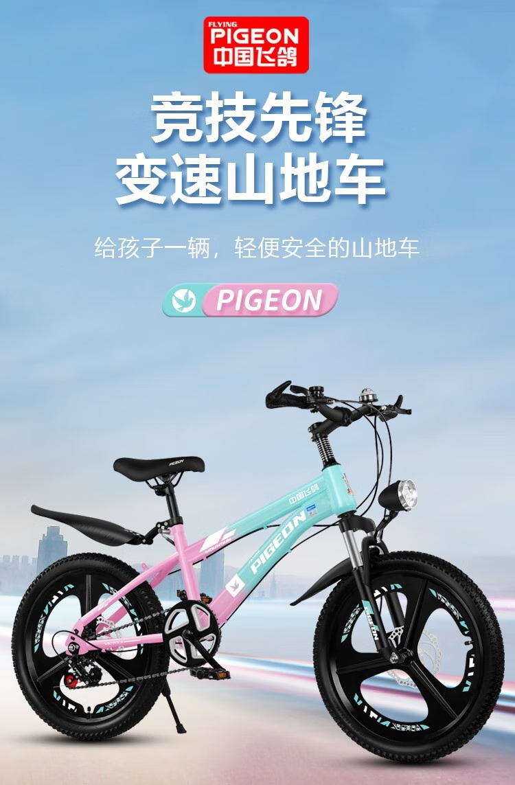 飞鸽【碟刹减震】儿童自行车6-10-15岁中大童山地车男女孩学生脚踏车