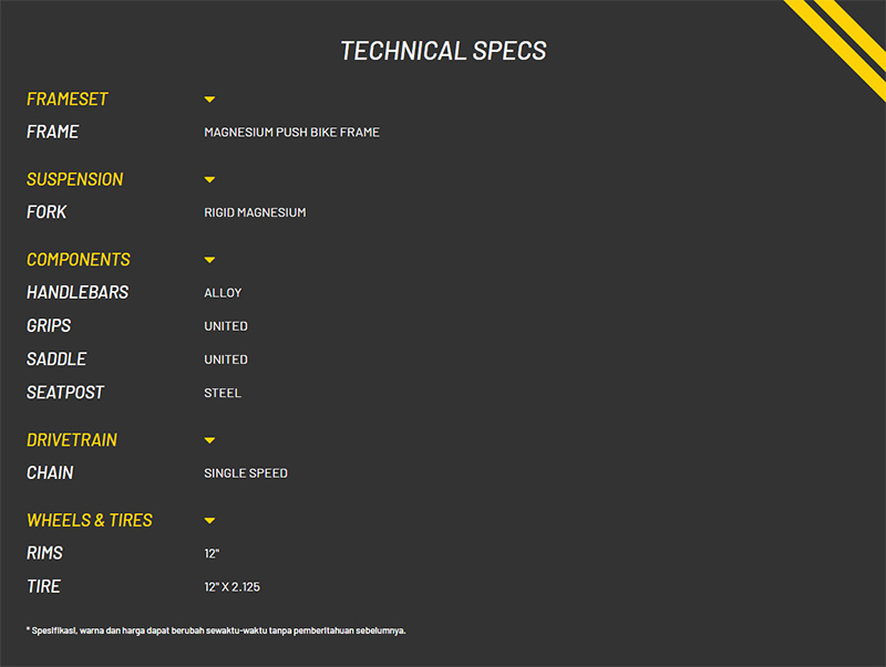 Sepeda Push Bike favorit anak-anak Indonesia!Picabo hadir dengan warna yang elegan yang cocok untuk anak-anak yang aktif dan enerjik.