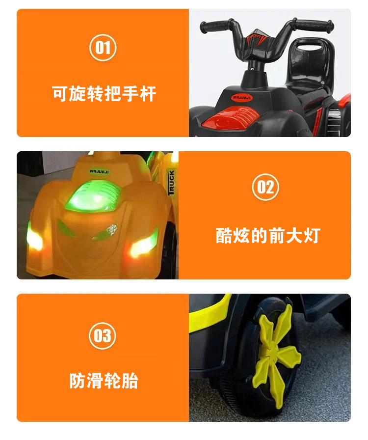 货号:046-TCZD注册会员可查看: 体积.重量等参数,并可自动生成订单合同,自动汇总数据,选配功能!一键启动+多种功能音乐板+音量加减+早教功能+前进后退功能+脚踩油门+缓启动+炫彩灯光+单驱380电机+6v4电瓶