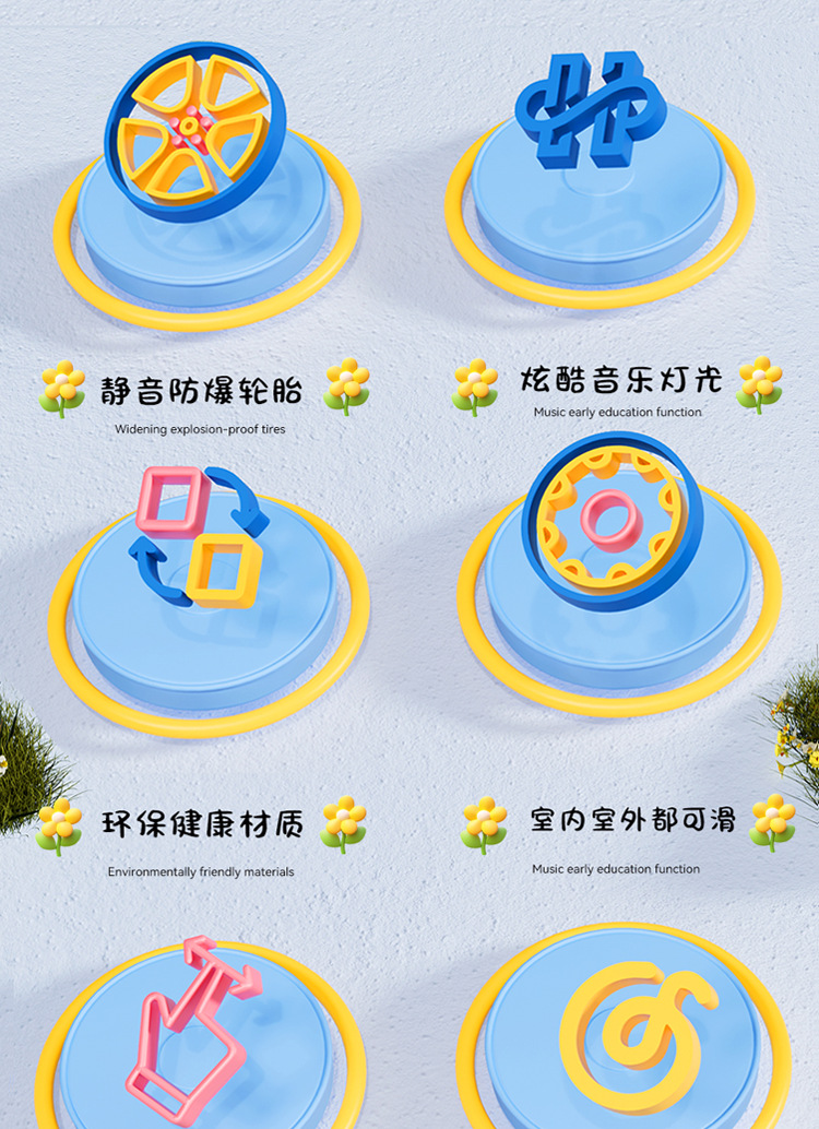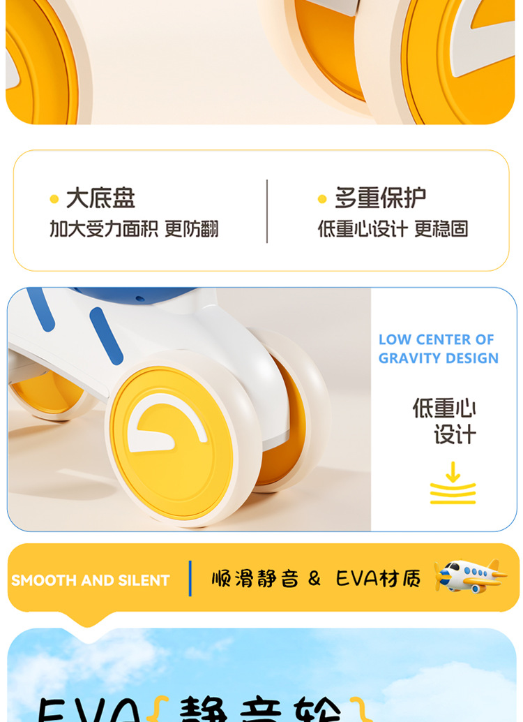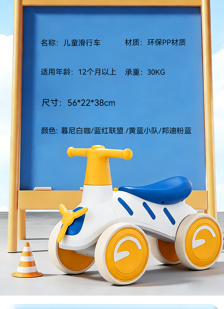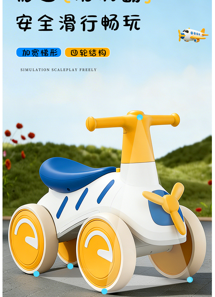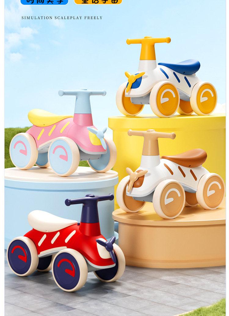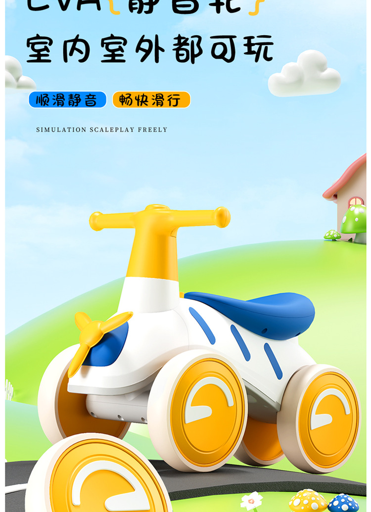 儿童平衡车1-3岁宝宝滑步车四轮防侧翻无脚踏溜溜车音乐灯光玩具