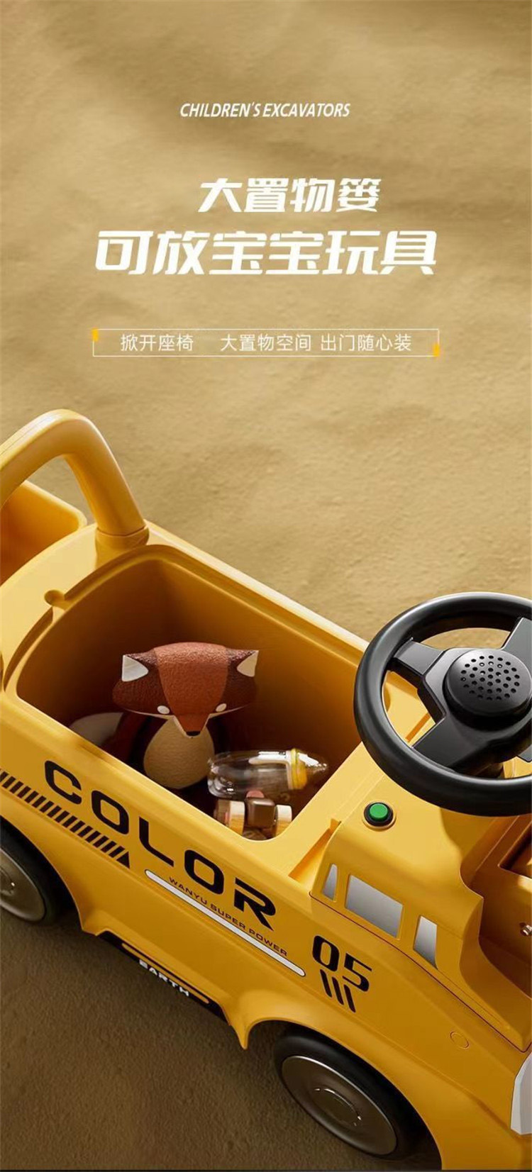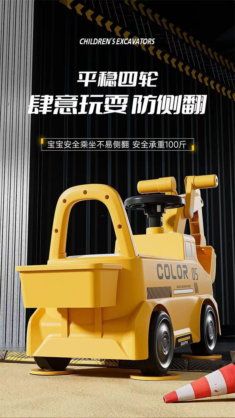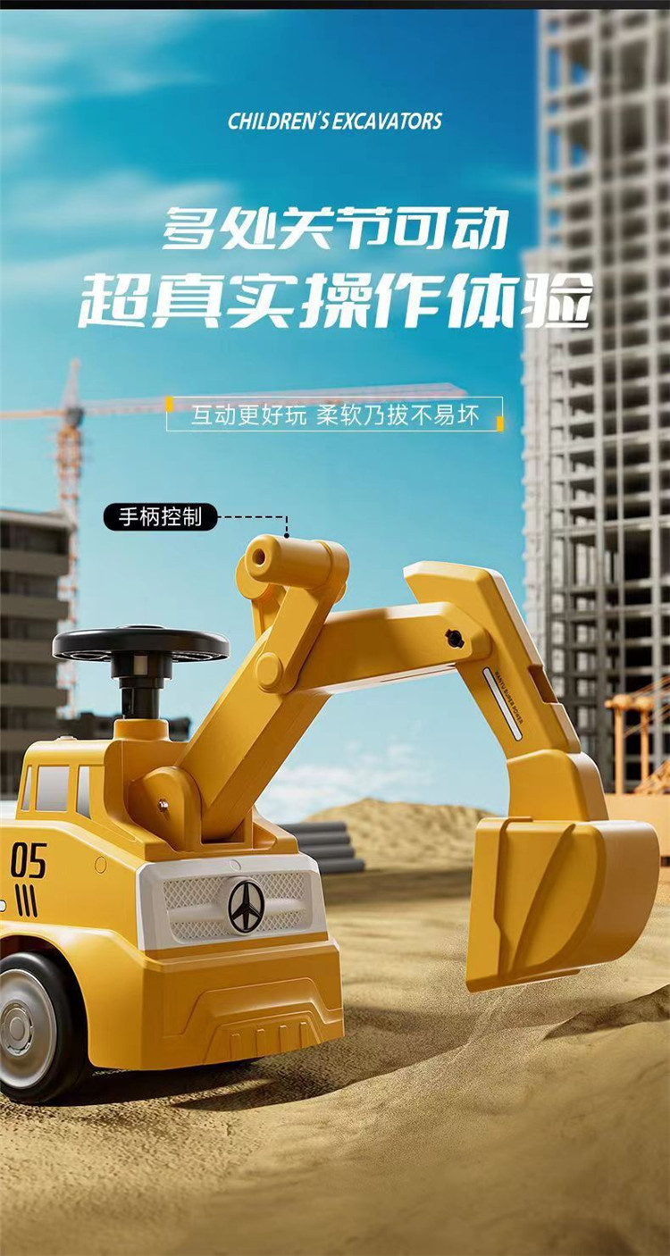 儿童挖掘机滑行工程车可坐人可挖土1-3宝宝滑行车溜溜车工程滑行车