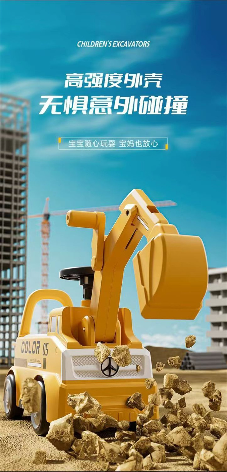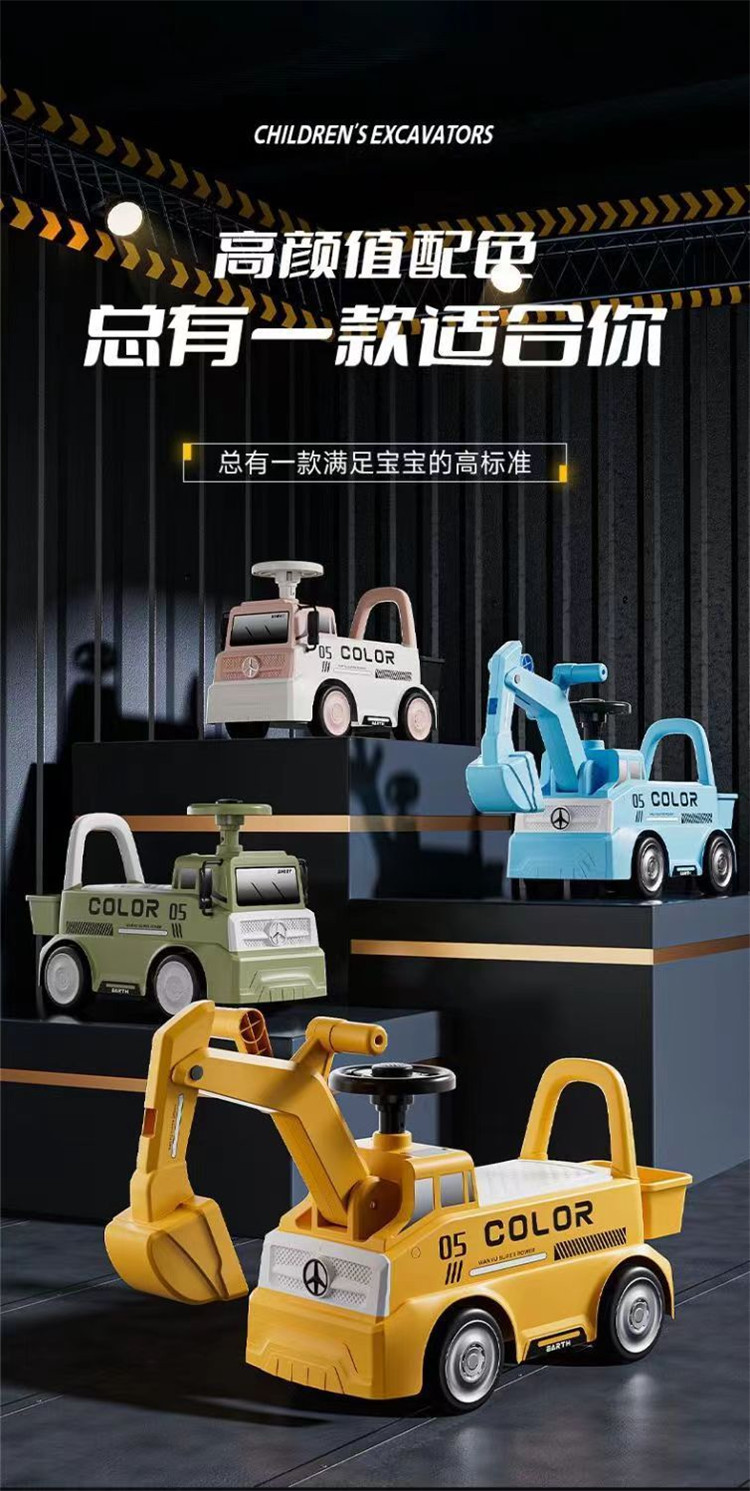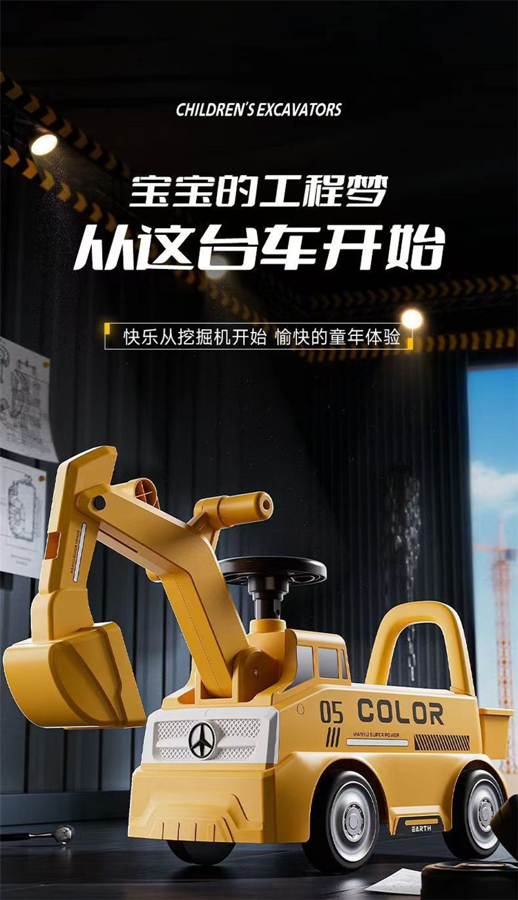 儿童挖掘机滑行工程车可坐人可挖土1-3宝宝滑行车溜溜车工程滑行车