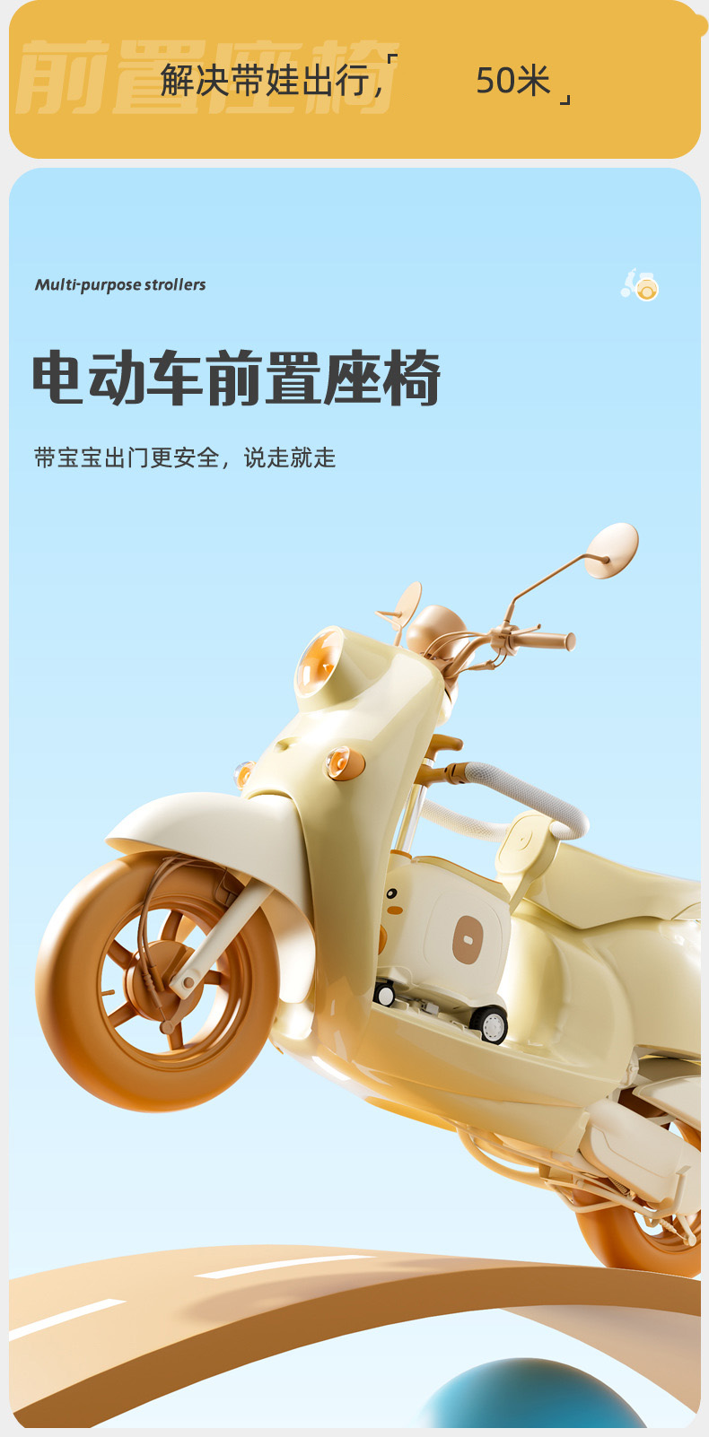 Electric car, child front safety seat, storable, baby scooter, electric scooter, universal cushion, pedal seat