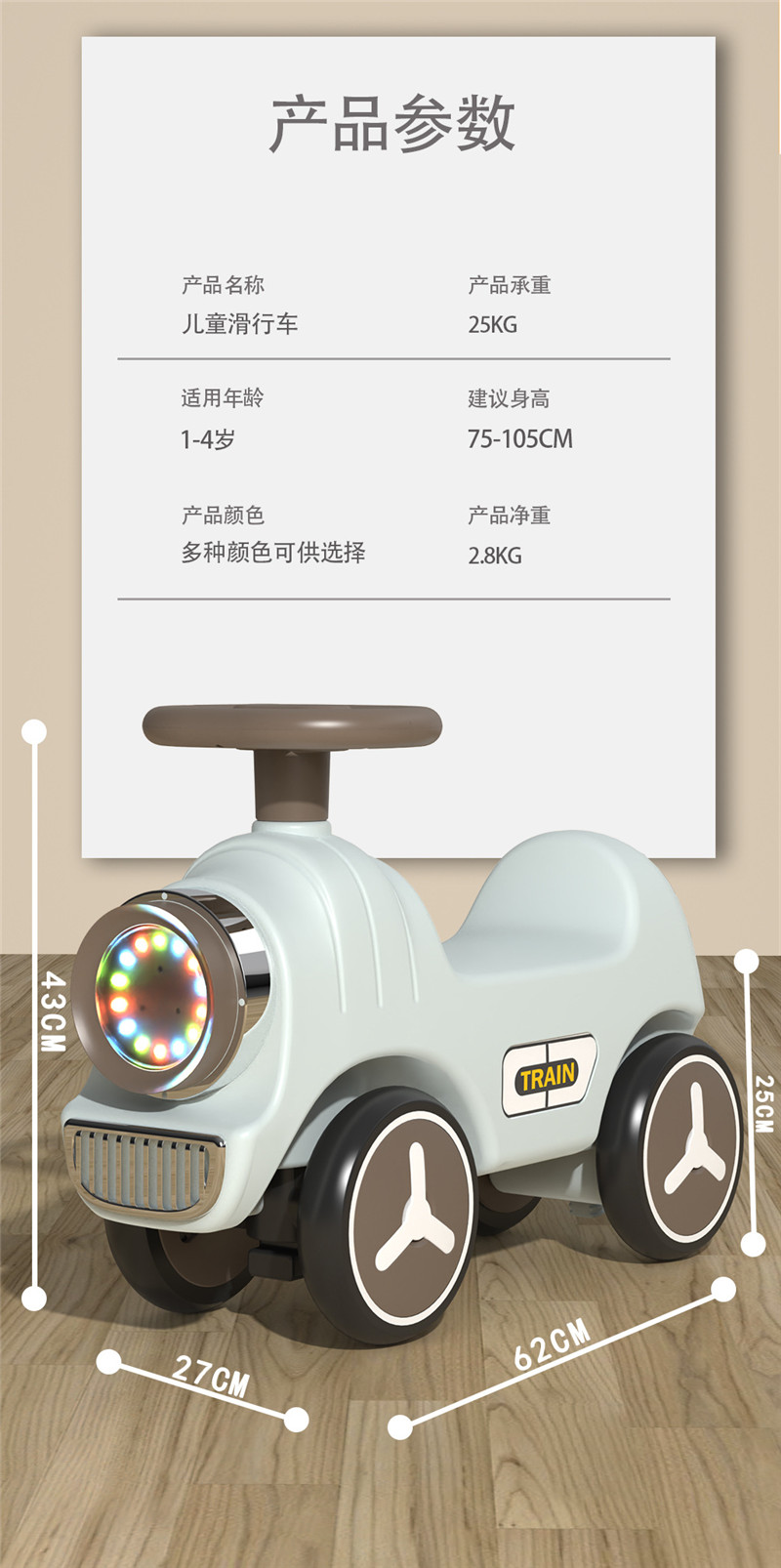 高档新款儿童滑行车四轮平衡车1-3岁男女宝宝滑步车溜溜车带灯光