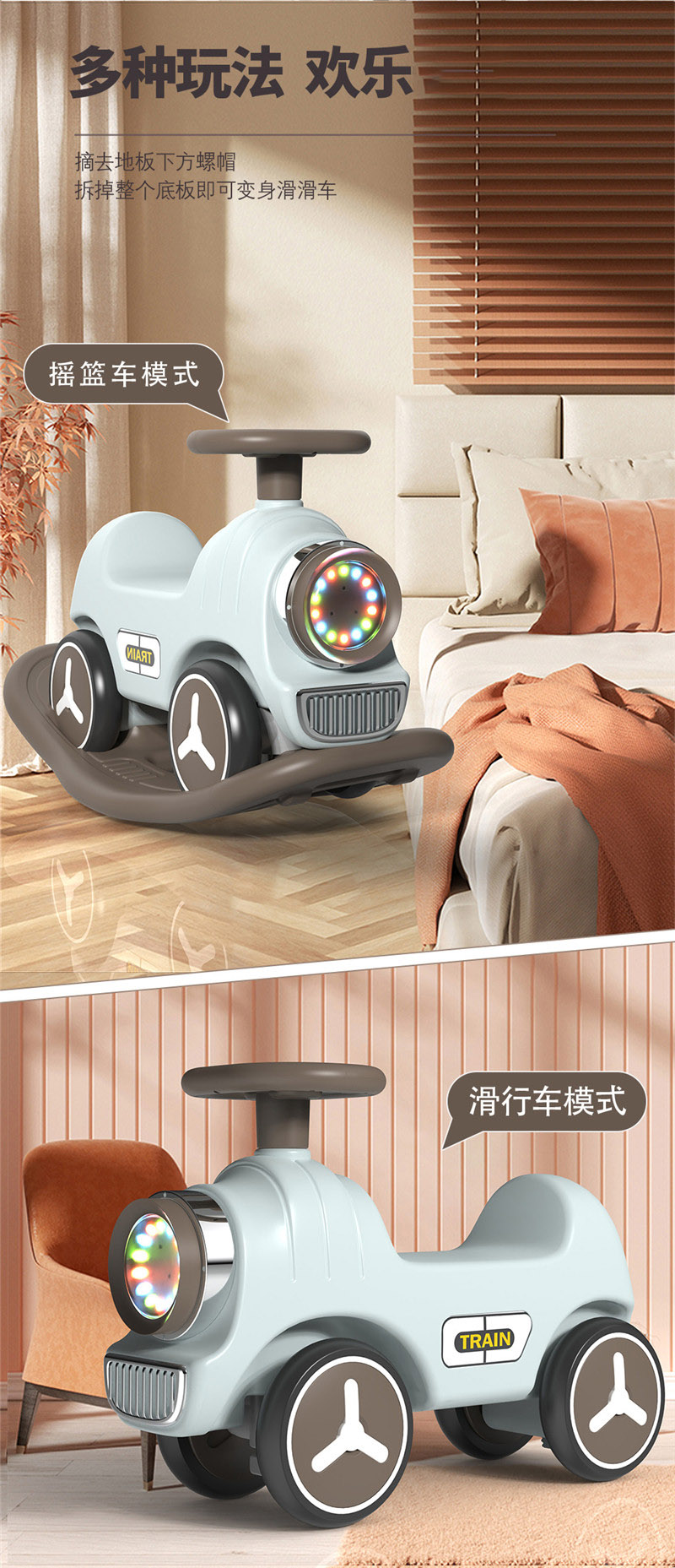 新款儿童摇摇马溜溜车二合一多种功能家用婴幼儿室内火车玩具