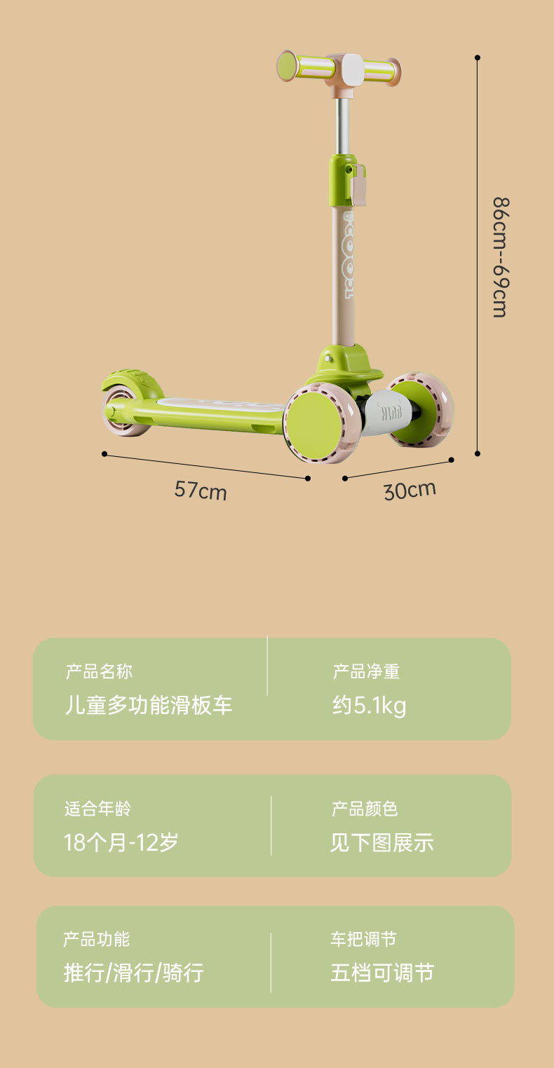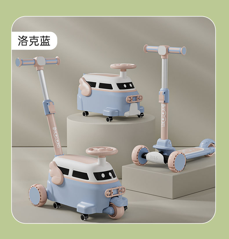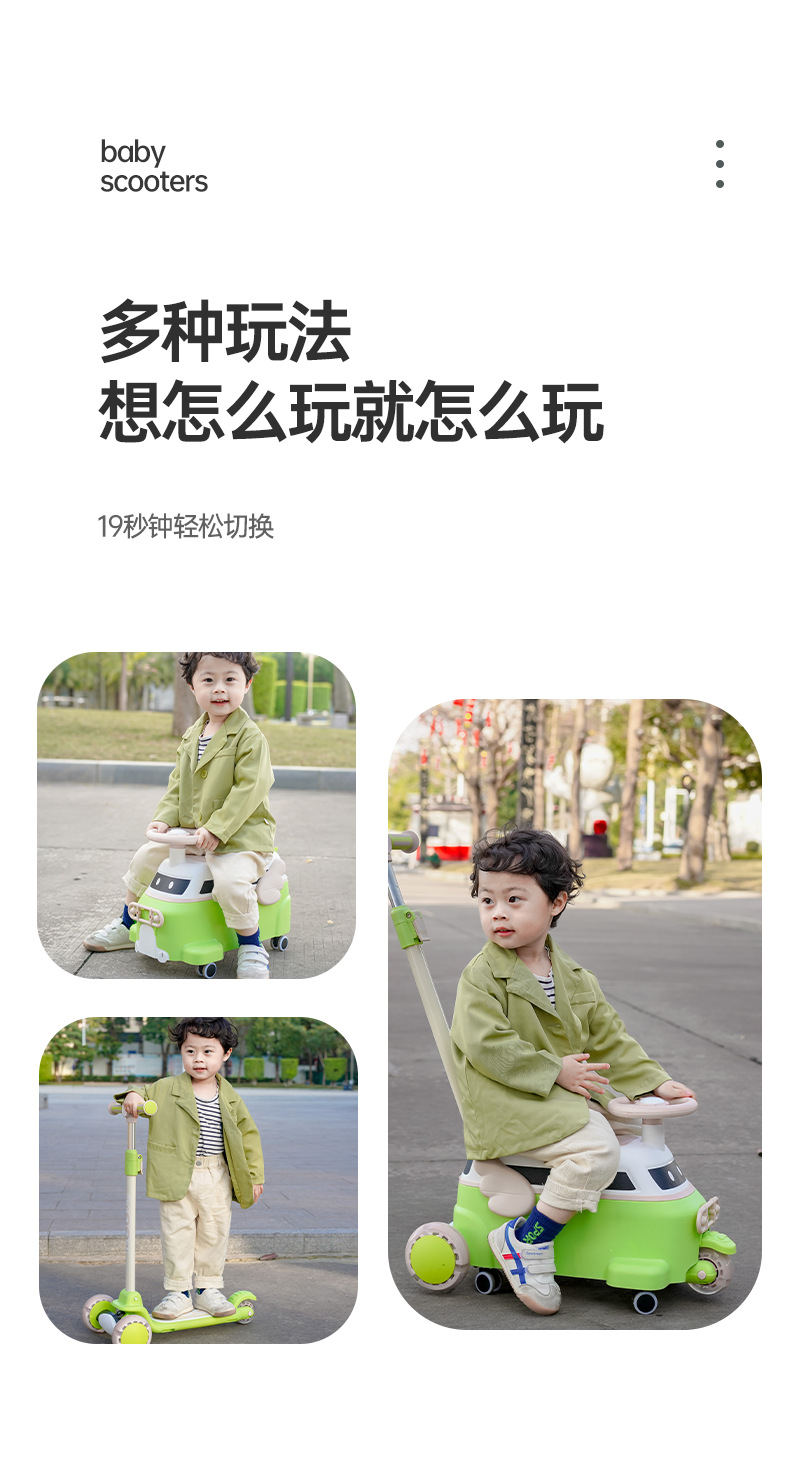 【暮夕粉/油果绿/深海蓝-滑行车】+大储物箱+万向轮,【滑板车】+稳静音闪光轮+一件折叠+升降调节,【三合一】+[溜溜车+滑板车+手推车]