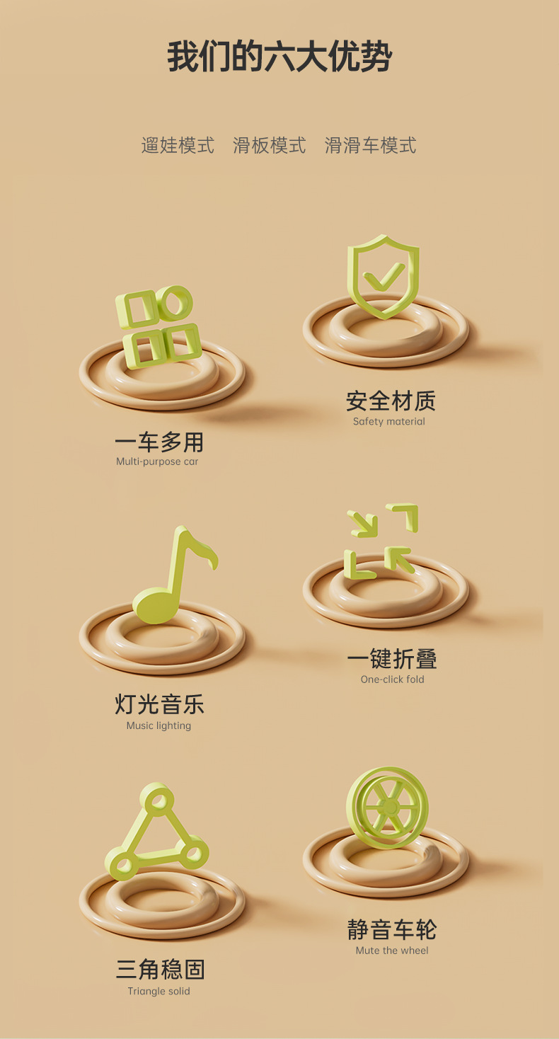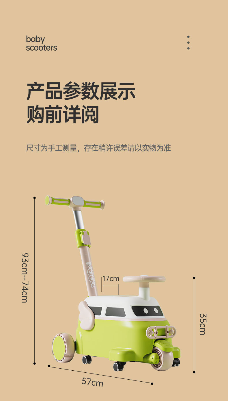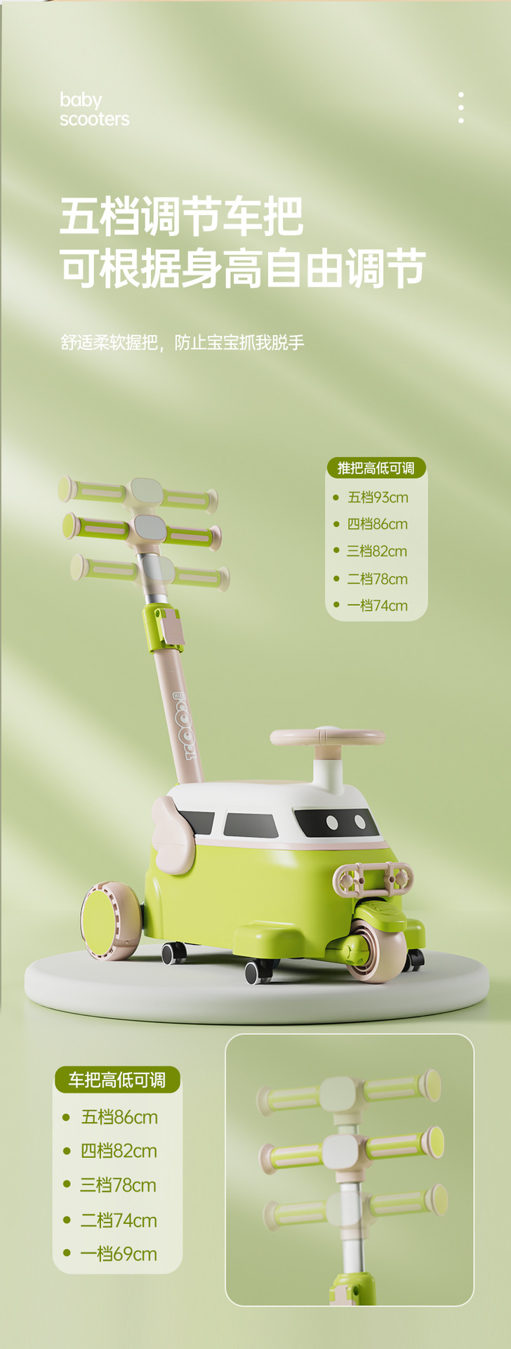 【暮夕粉/油果绿/深海蓝-滑行车】+大储物箱+万向轮,【滑板车】+稳静音闪光轮+一件折叠+升降调节,【三合一】+[溜溜车+滑板车+手推车]