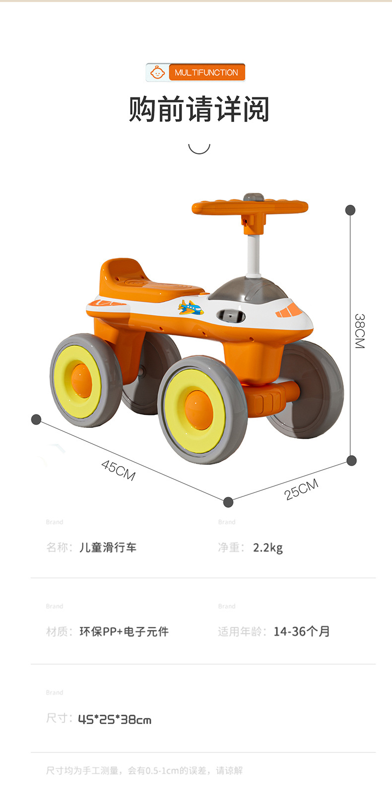 工厂新款儿童四轮平衡车儿童滑步车1-3岁扭扭车溜溜车滑行车学步