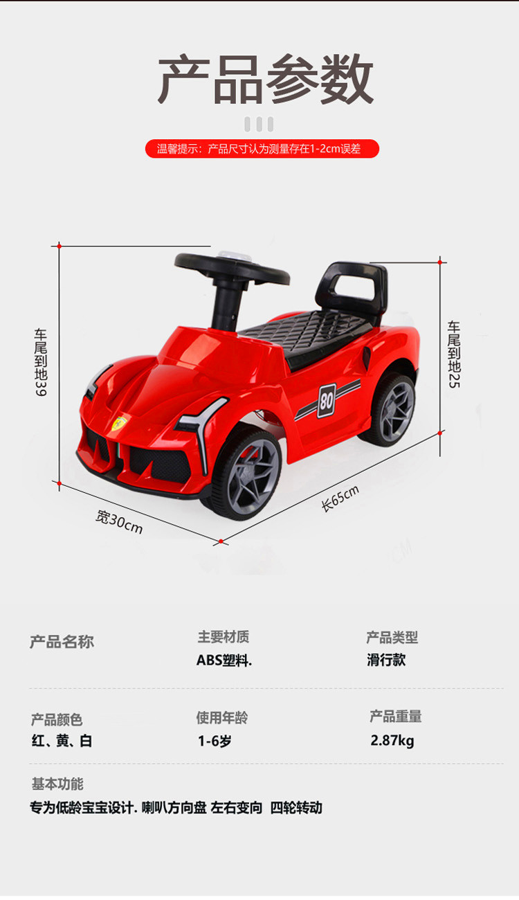 1一3岁儿童汽车滑行车无脚踏婴幼儿溜溜车宝宝滑步车男女孩平衡车