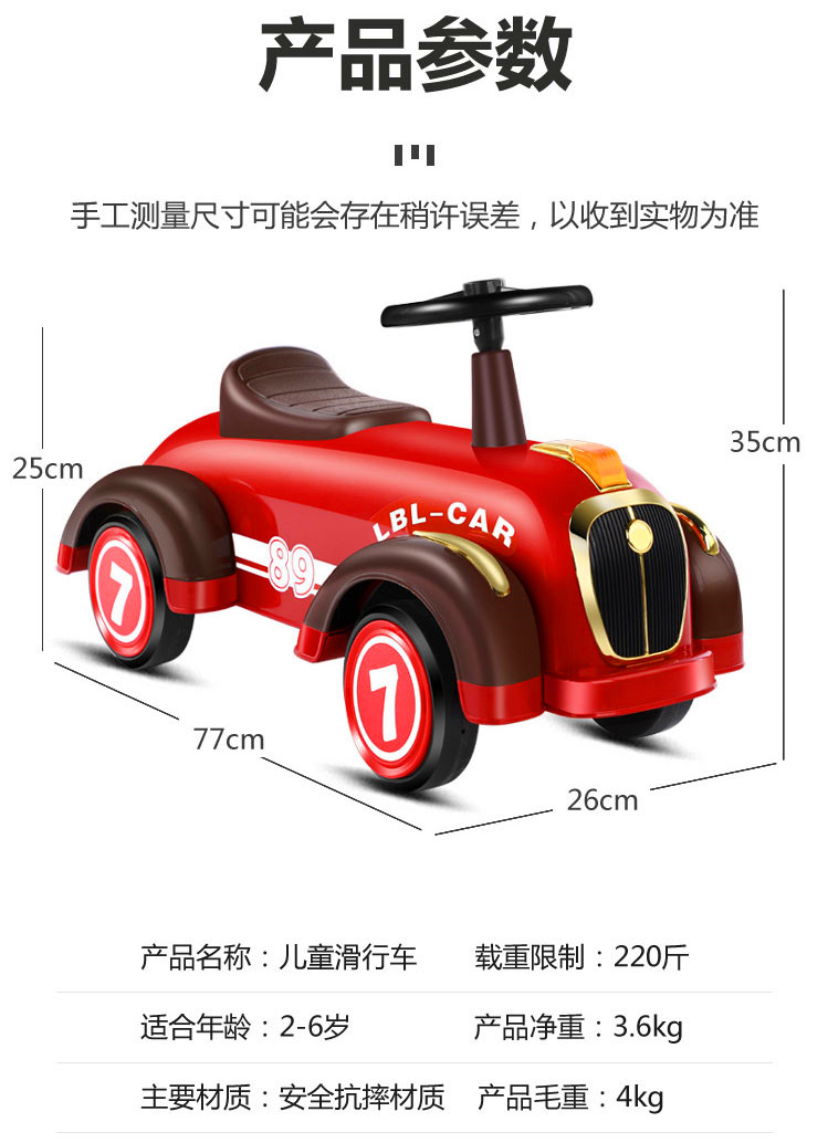 1一3岁儿童汽车滑行车无脚踏婴幼儿溜溜车宝宝滑步车男女孩平衡车