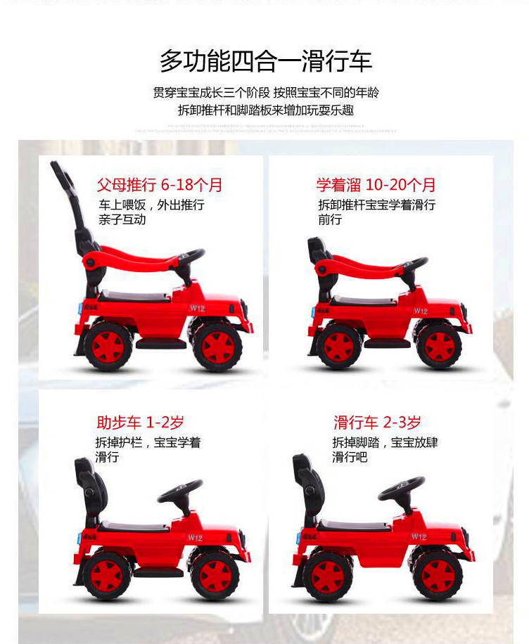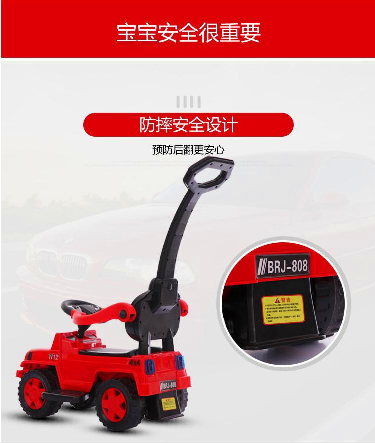 吉普防摔音乐无脚踏国产户外三合一带音乐红色婴童小车学步车