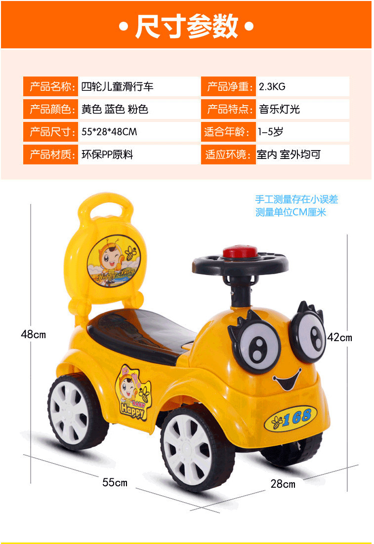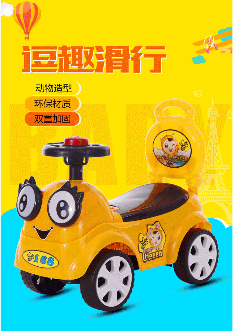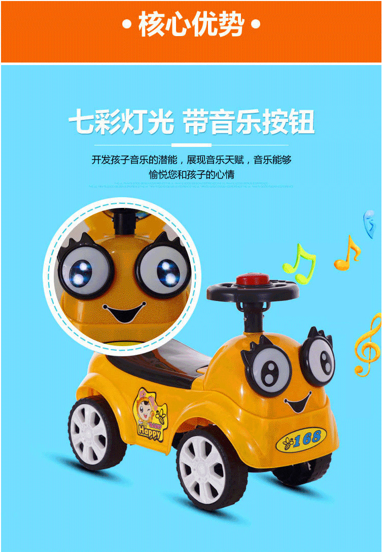 儿童滑行车扭扭车蜜蜂童车溜溜车奶粉婚纱赠品音乐+七色灯光