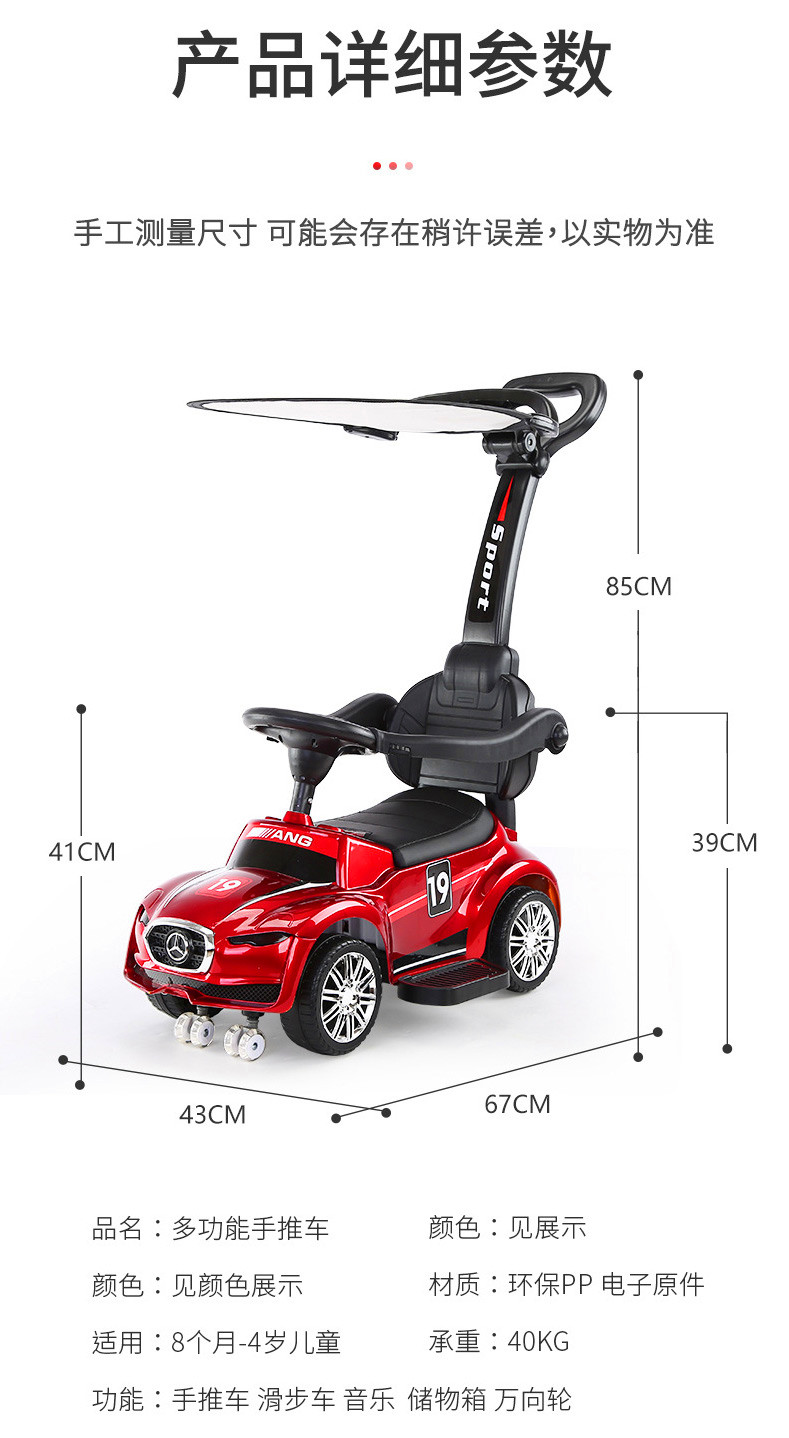 (白蓝橙红)滑行车,推把款,遮阳款。烤漆蓝/红推把款,遮阳款