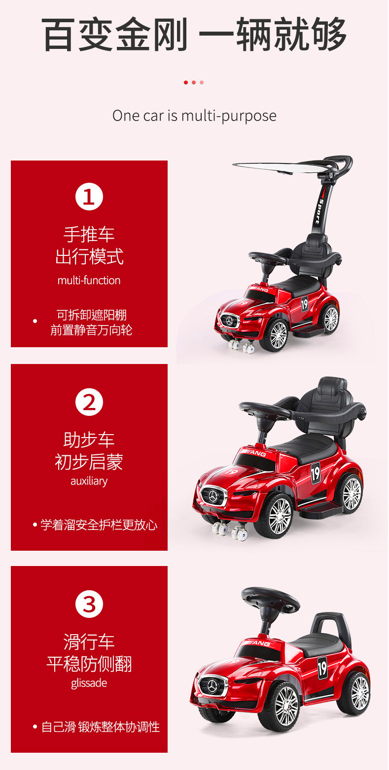 儿童手推车1-3岁 儿童滑行车可做人音乐灯光四轮滑行车