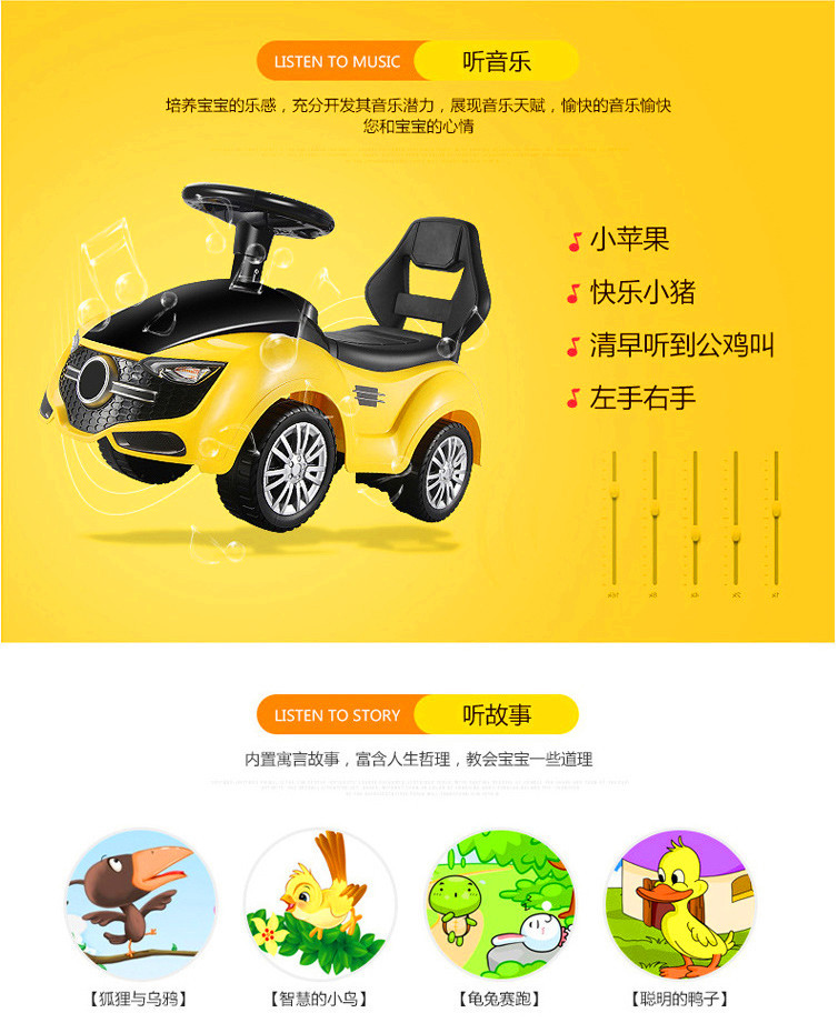爆款儿童滑行车滑步防侧翻带音乐可坐可骑溜溜车定制汽车滑行车