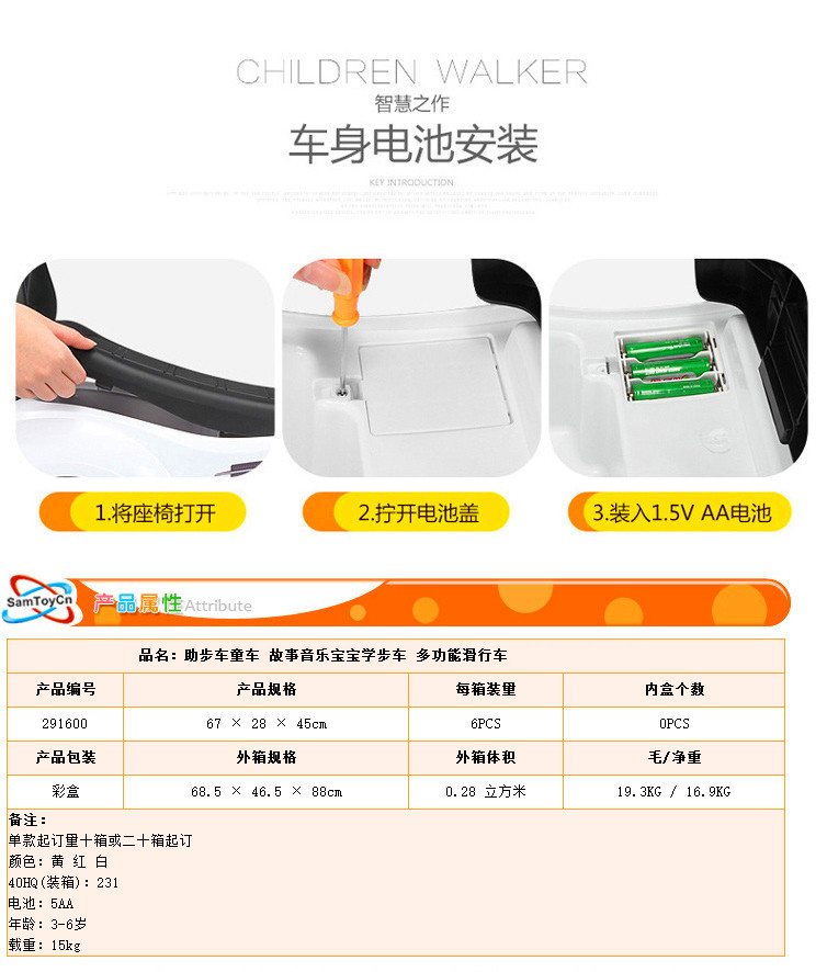 助步车童车 故事音乐宝宝学步车 多种功能滑行车厂家直供儿童车优惠