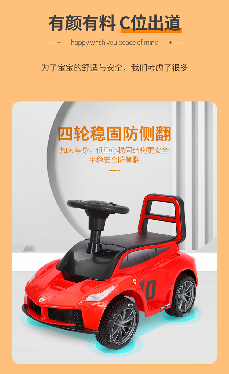 1-3岁儿童滑行车赛车溜溜车玩具车四轮玩具车可坐人带灯光音乐