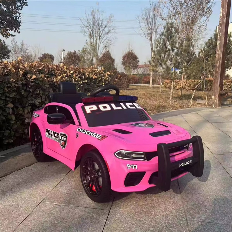Police car rides in a car remote control electric bike for kids rides a small car in a girl's car