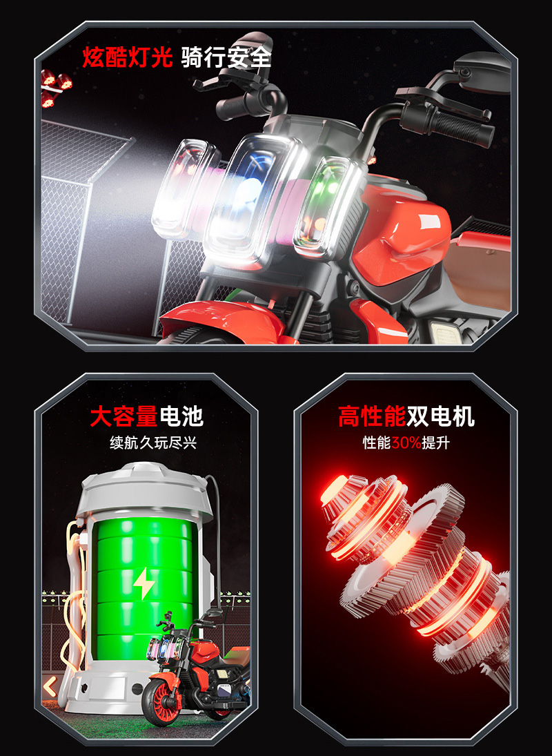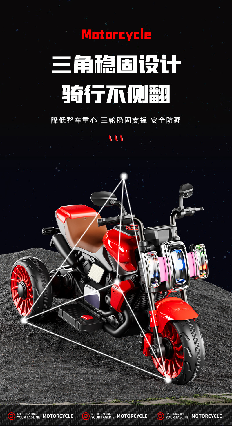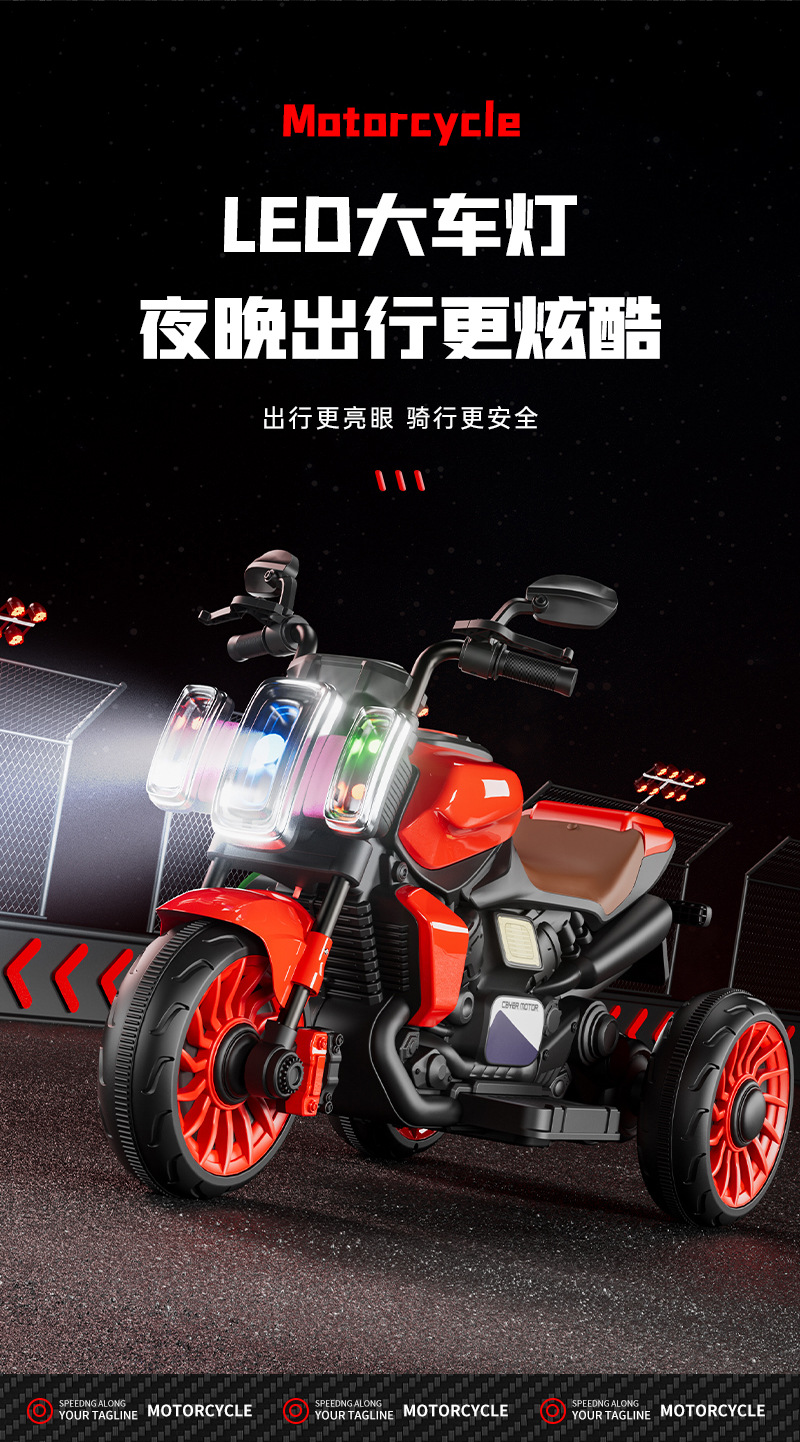 1-3岁儿童电动摩托车三轮车男女宝宝小孩电瓶车可坐人充电玩具车